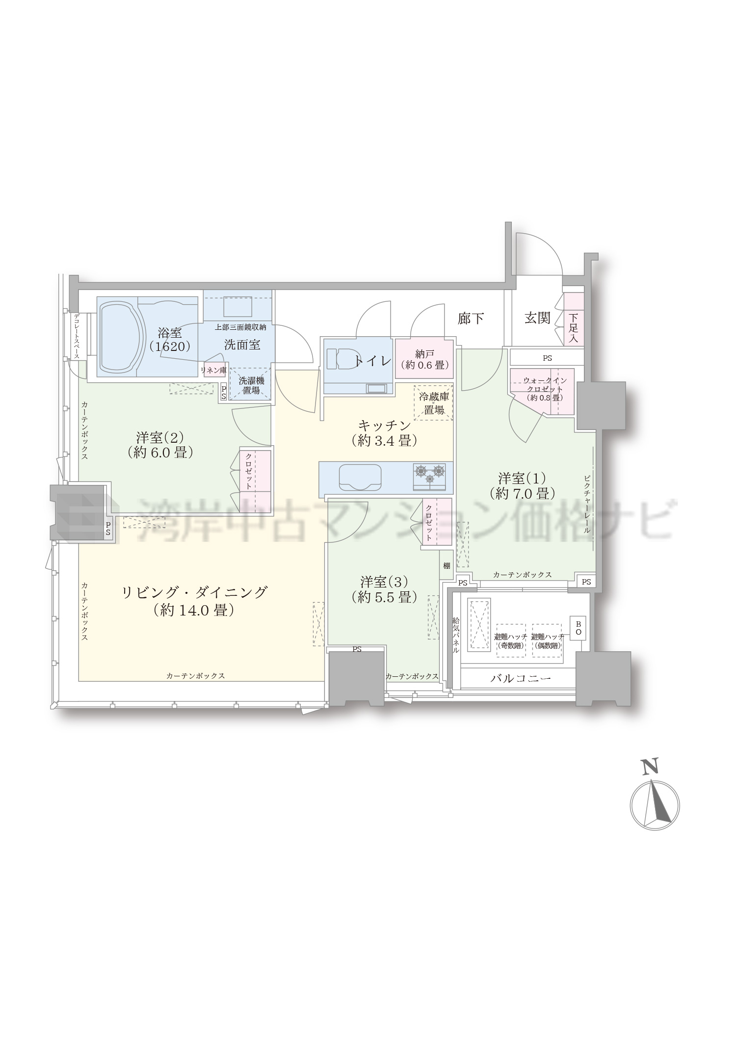 80H タイプ 間取り3LDK専有面積82.17m²