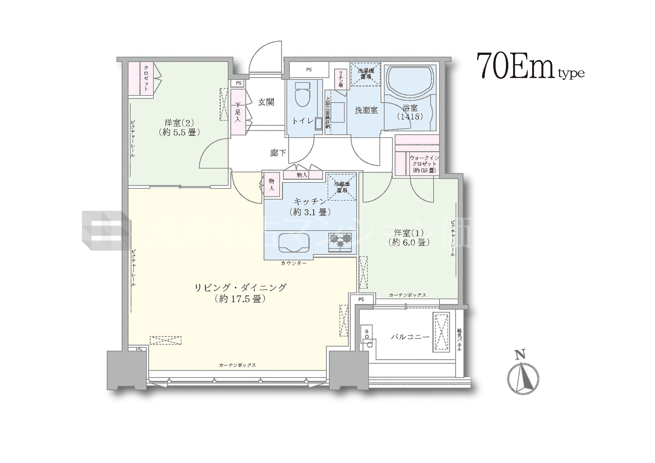 70Em タイプ 間取り2LDK専有面積72.23m²
