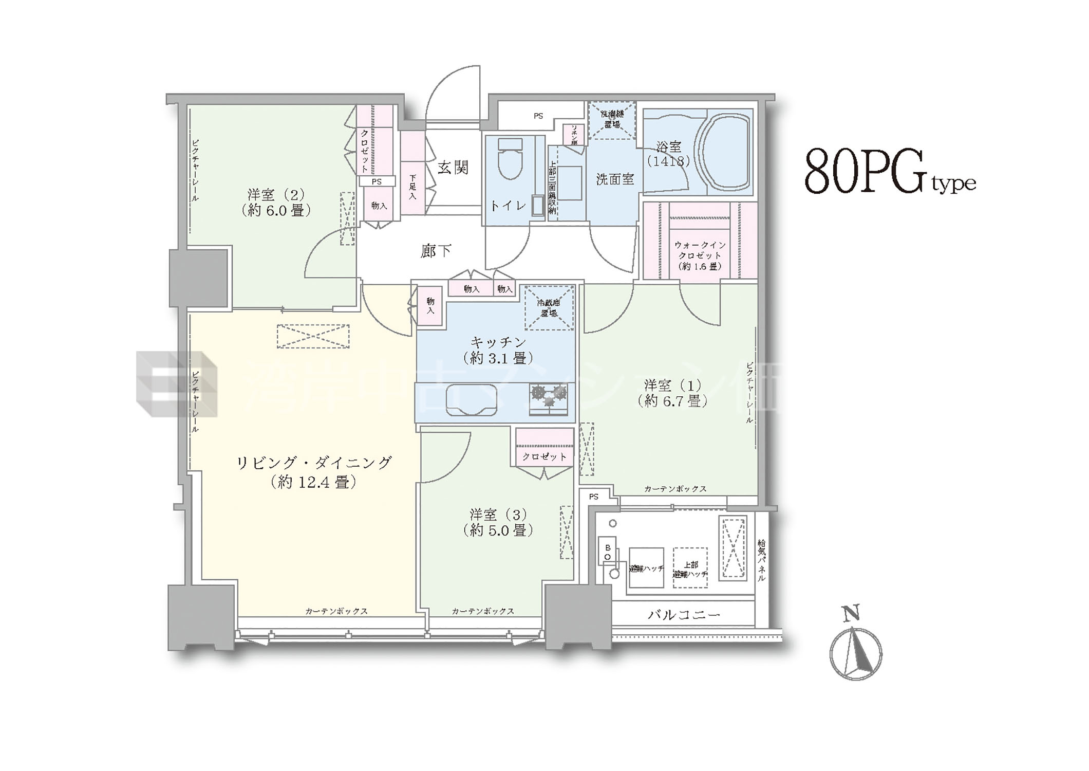 80PG タイプ 間取り3LDK専有面積76.45m²
