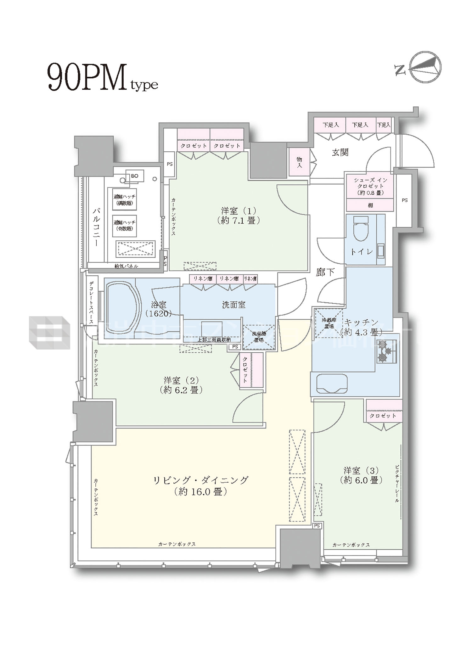90PM タイプ 間取り3LDK専有面積92.23m²