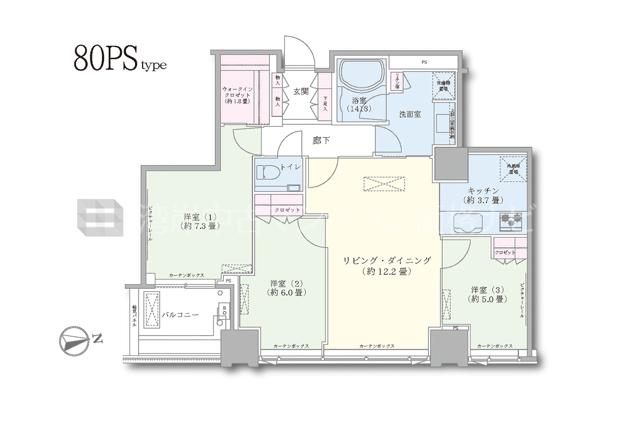 80PS タイプ 間取り3LDK専有面積79.54m²