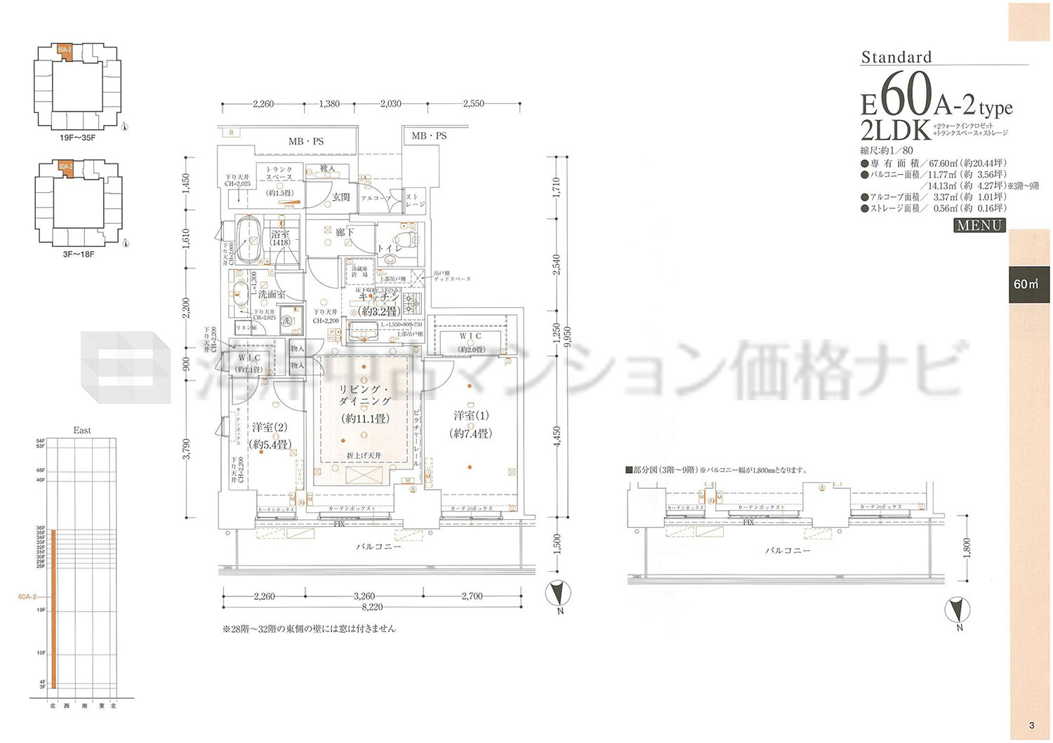 E60A-2 タイプ 間取り2LDK専有面積67.60m²