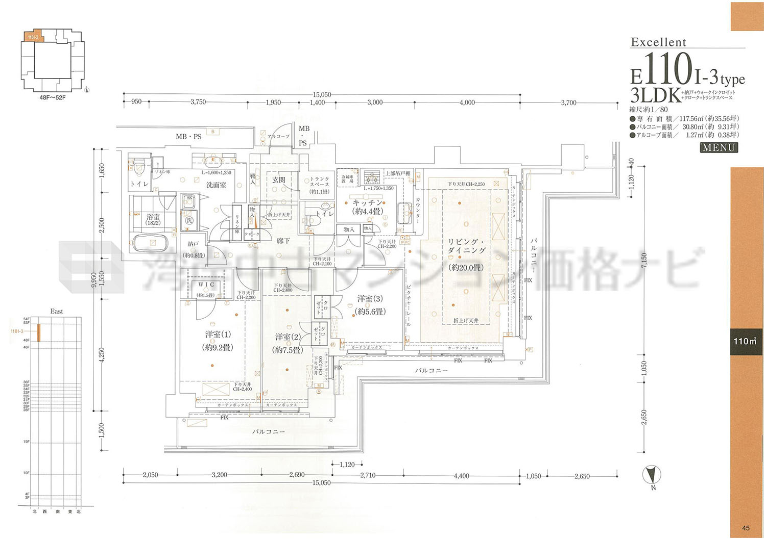 E110I-3 タイプ 間取り3LDK専有面積117.56m²