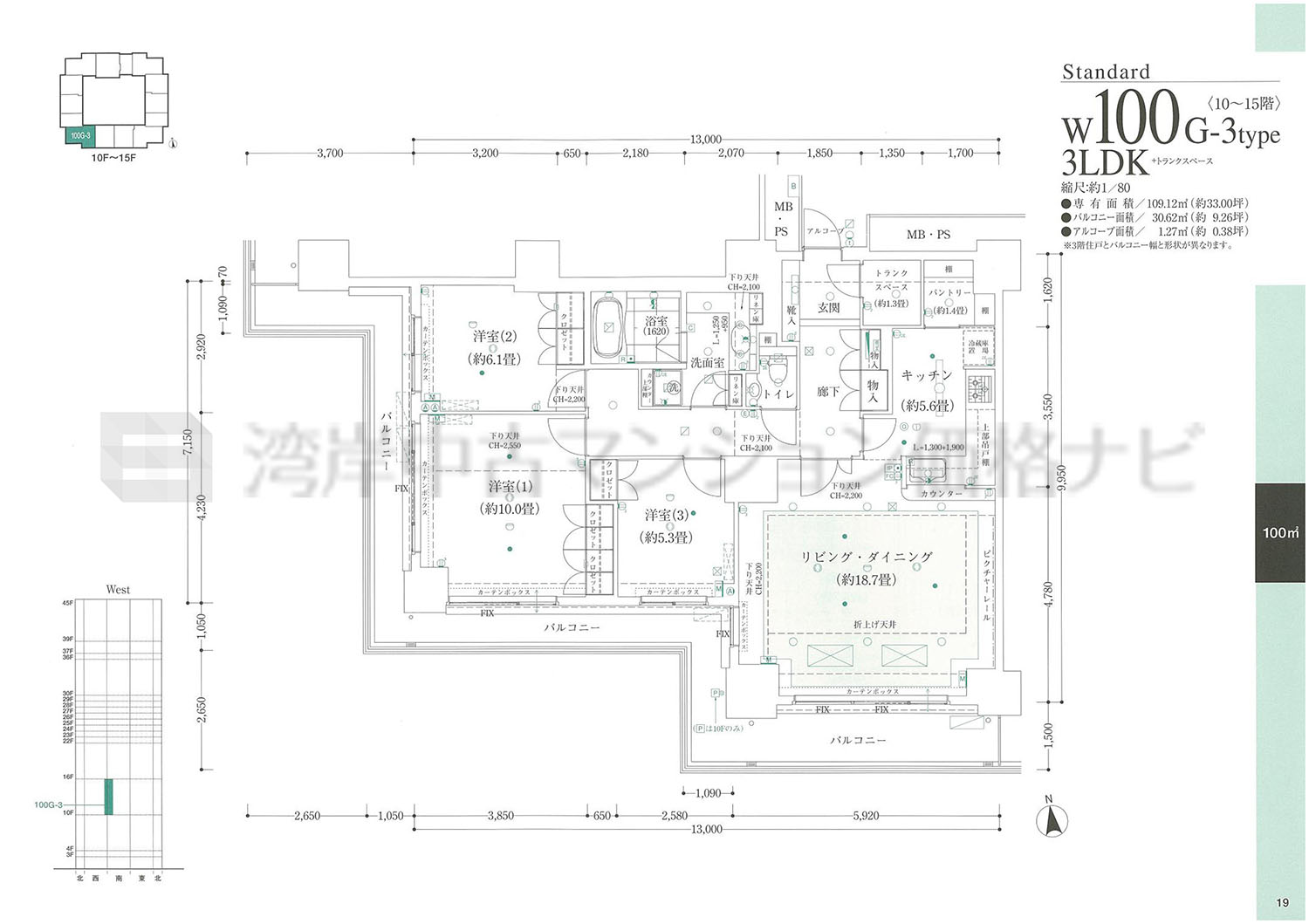 W100G-3 タイプ 間取り3LDK専有面積109.12m²