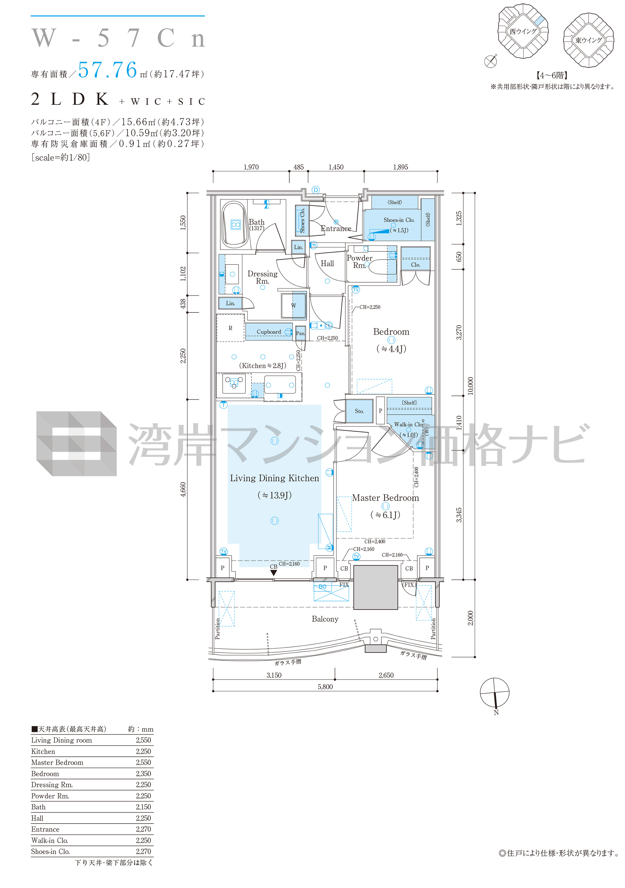 W-57Cn タイプ 間取り2LDK+α専有面積57.76m²