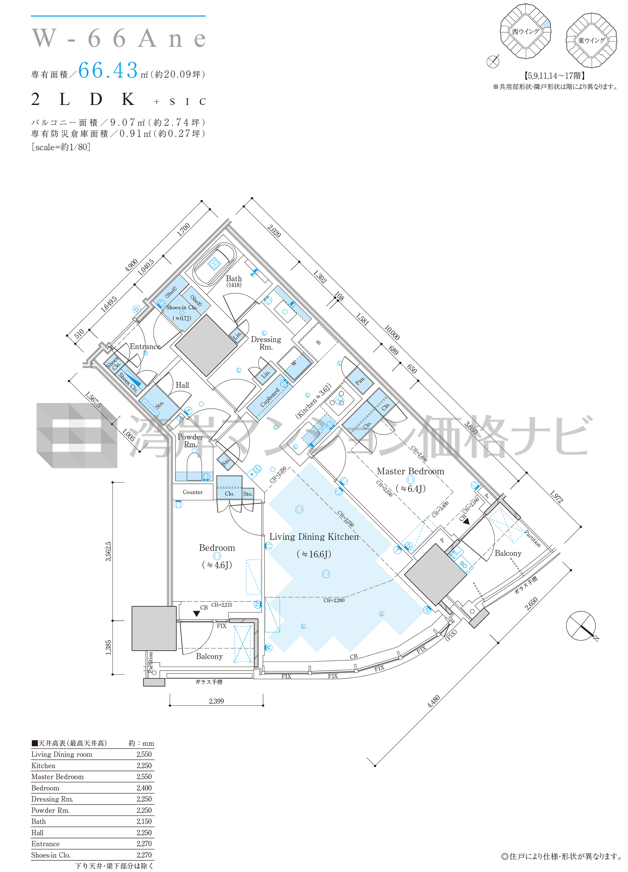 W-66Ane タイプ 間取り2LDK専有面積66.43m²