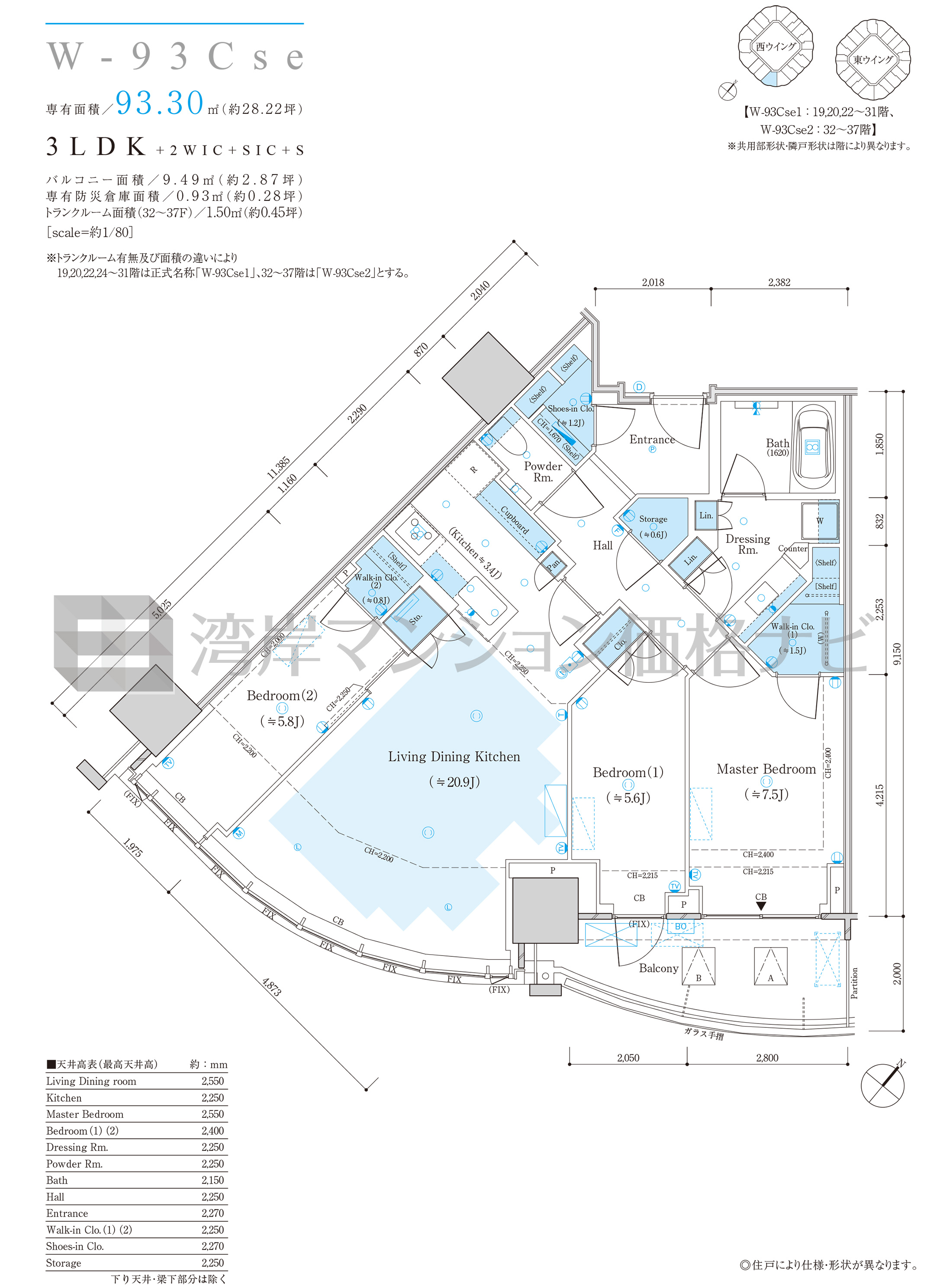 売出中住戸あり W-93Cse2 タイプ 間取り3LDK+α専有面積93.30m²