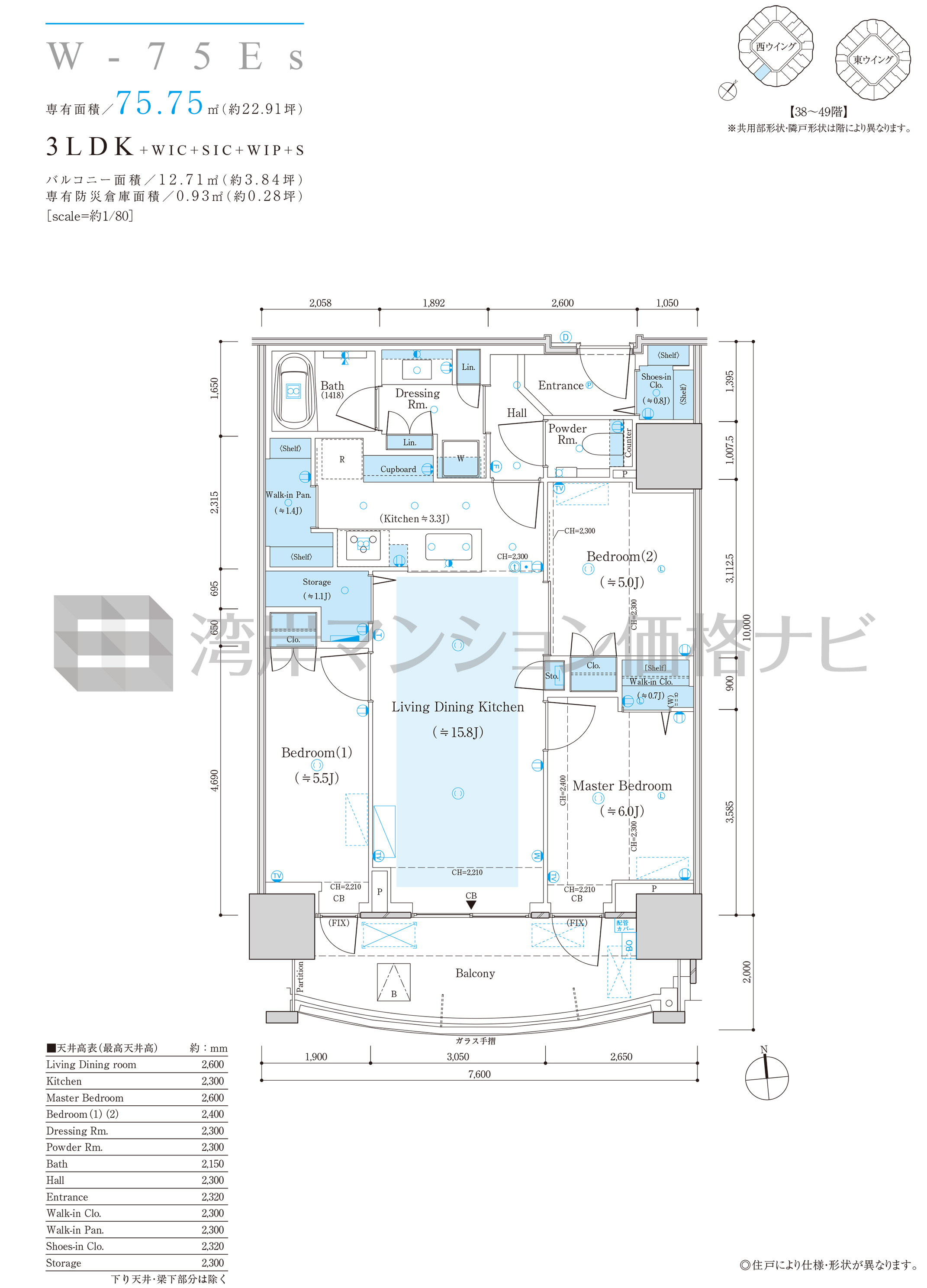W-75Es タイプ 間取り3LDK+α専有面積75.75m²