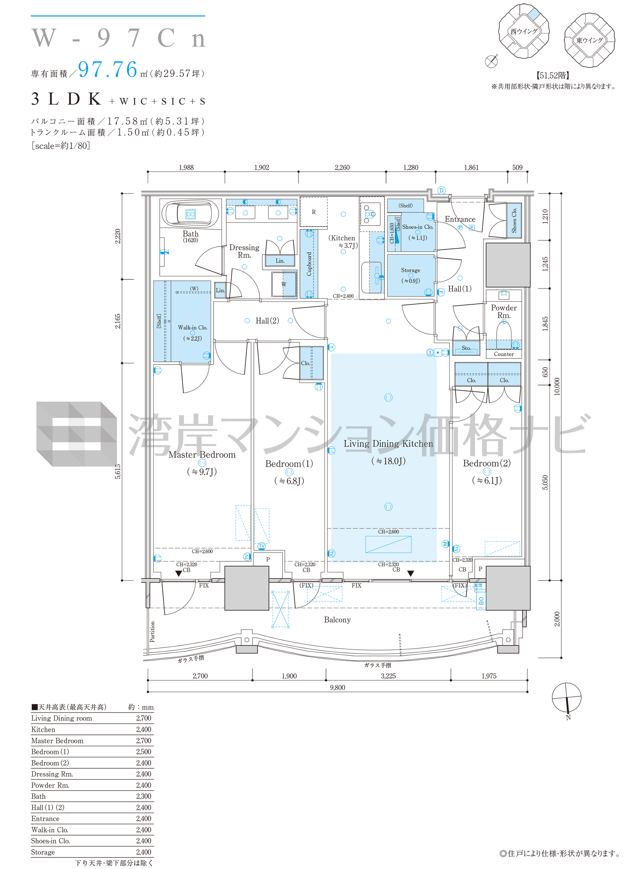 W-97Cn タイプ 間取り3LDK+α専有面積97.76m²