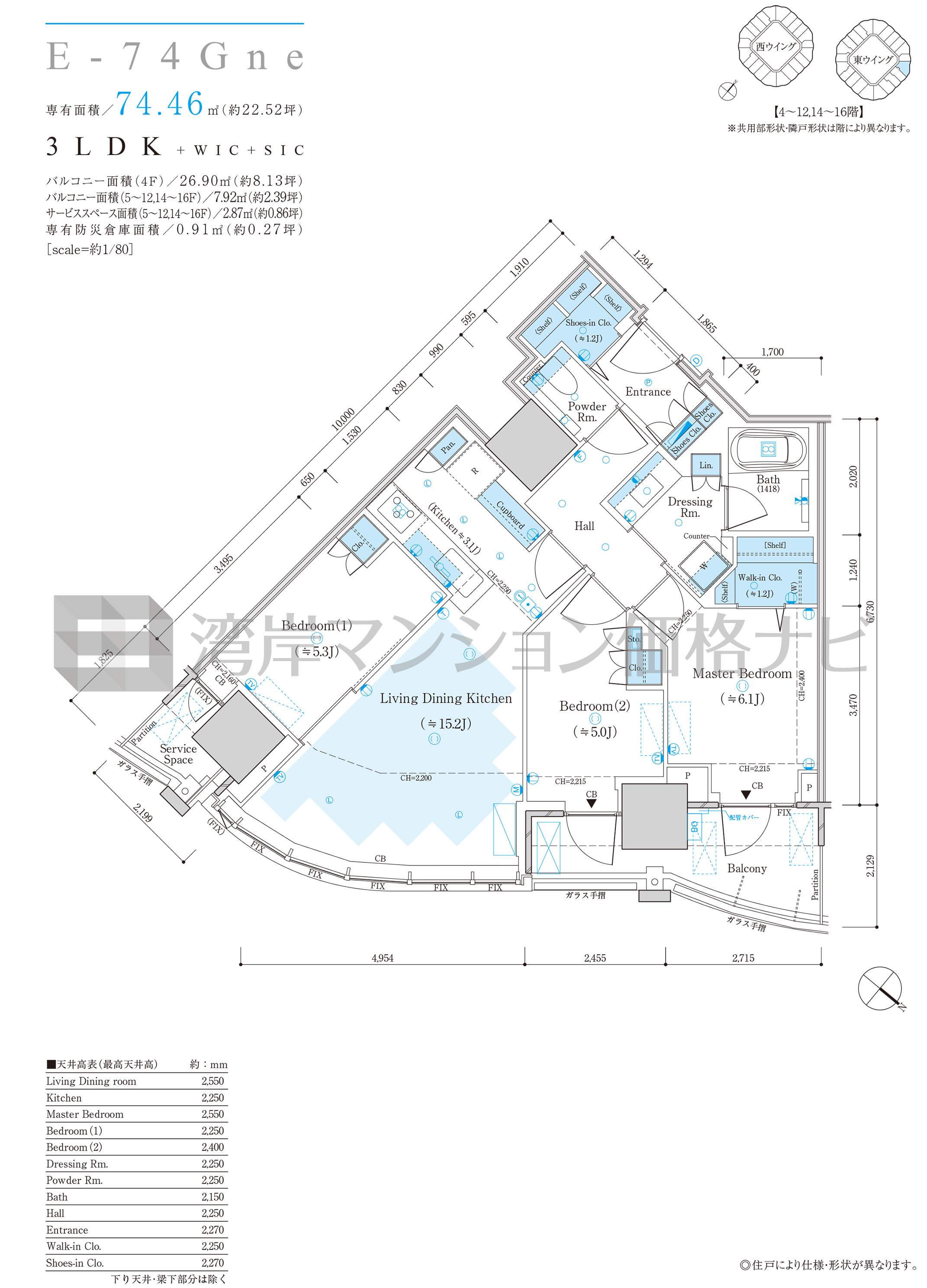 E-74Gne タイプ 間取り3LDK+α専有面積74.46m²