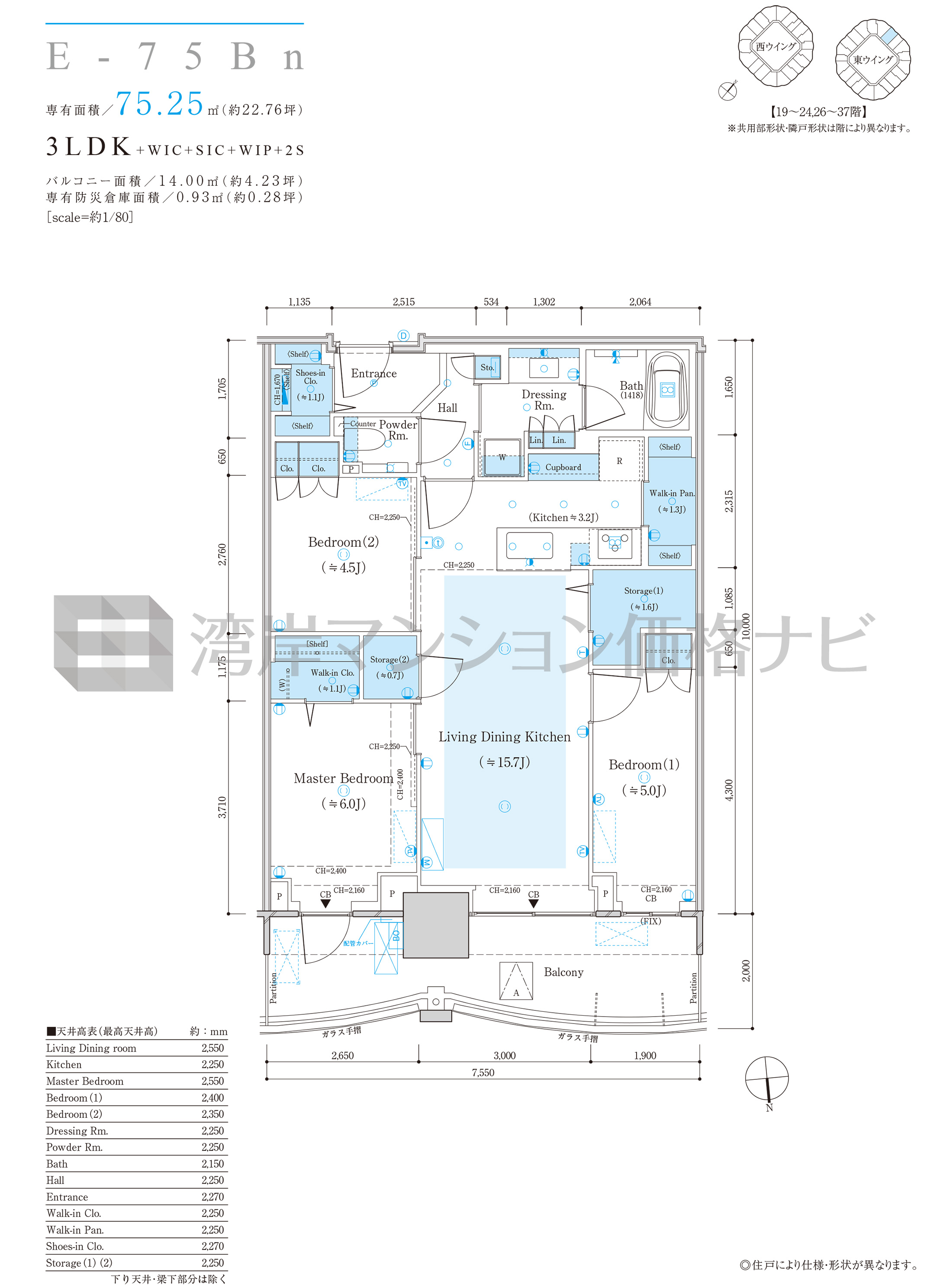 | 洋室1天井高 | 2,550mm |