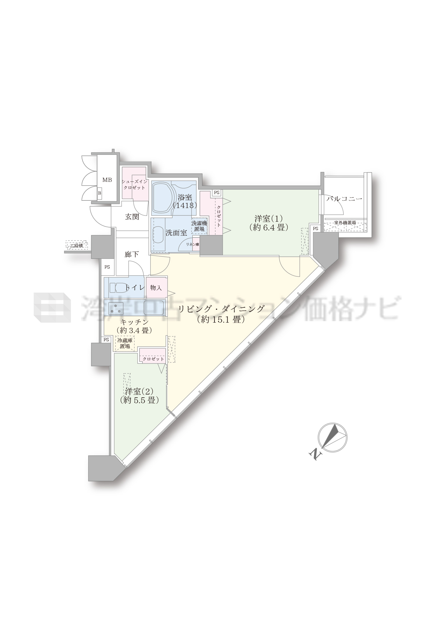 売出中住戸あり D2 タイプ 間取り2LDK専有面積69.04m²