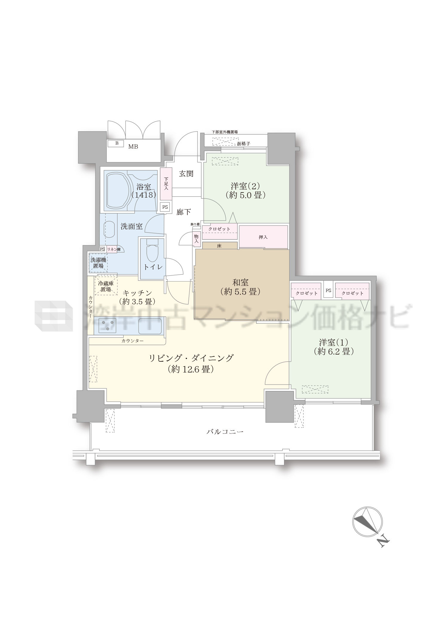 売出中住戸あり K タイプ 間取り3LDK専有面積71.89m²