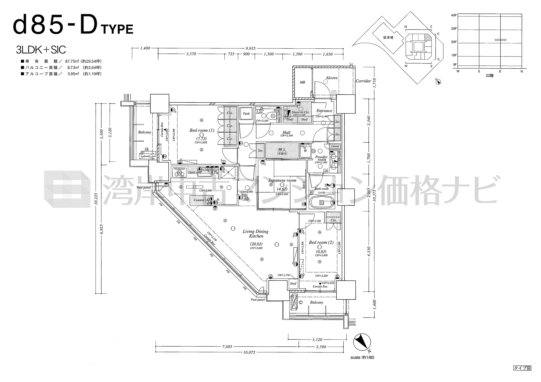 d85-D タイプ 間取り3LDK専有面積87.75m²
