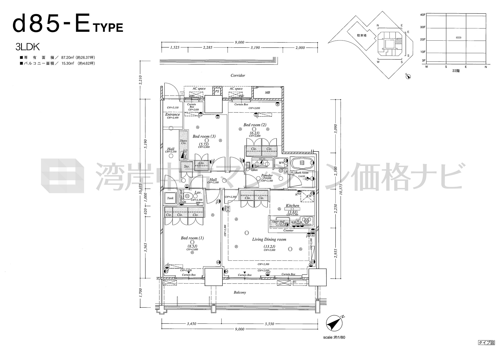 d85-E タイプ 間取り3LDK専有面積87.20m²