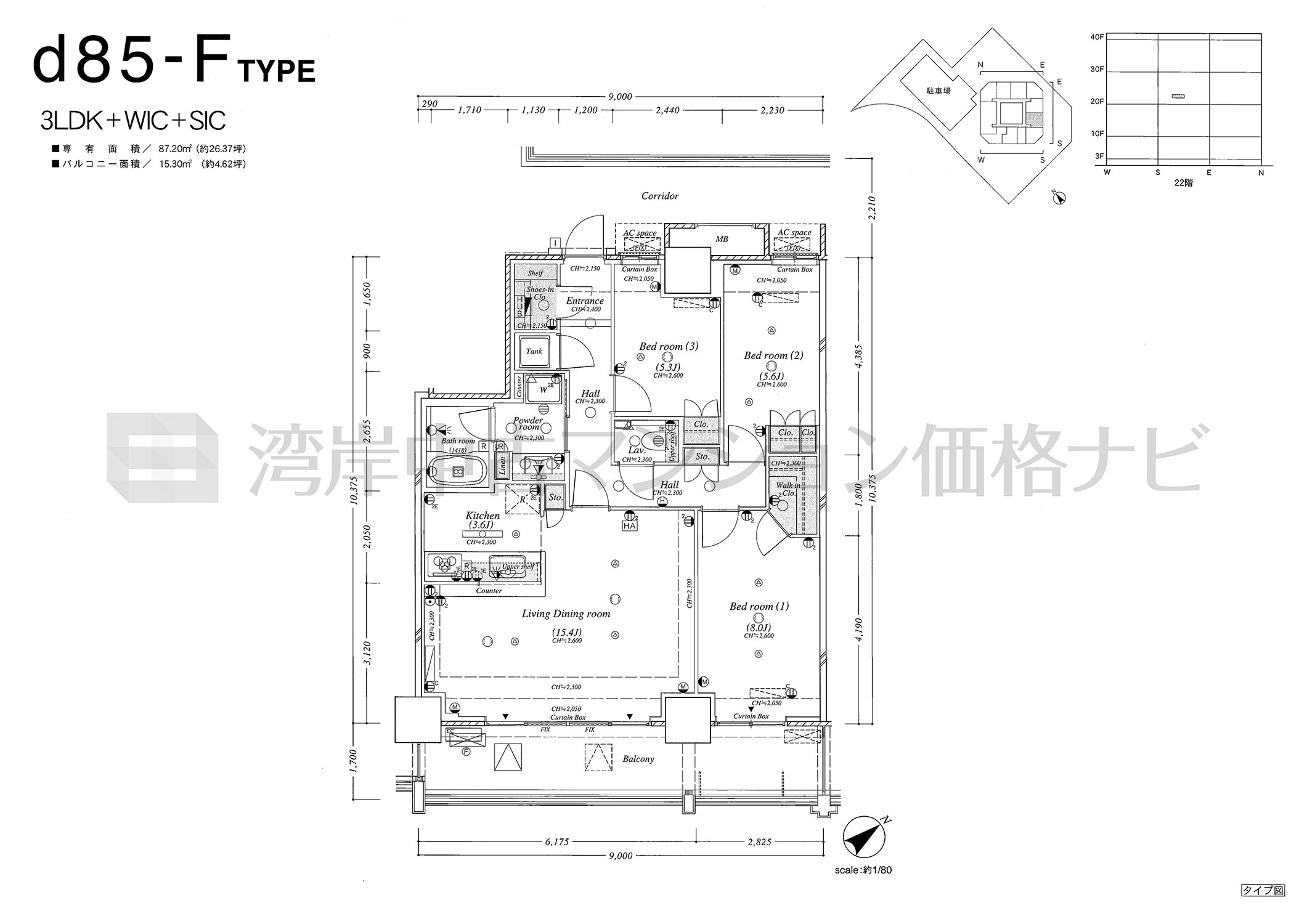 d85-F タイプ 間取り3LDK専有面積87.20m²