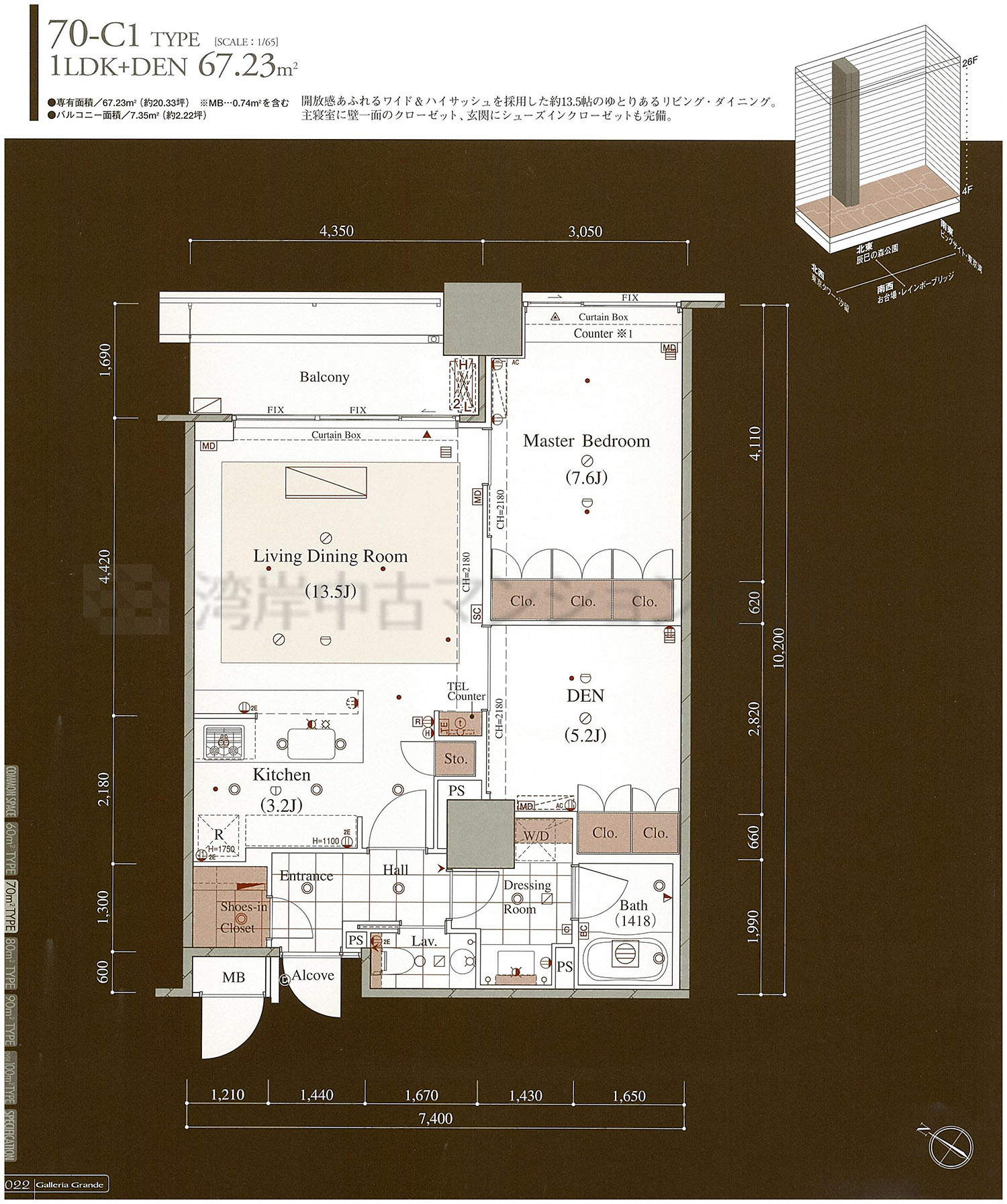 70-C1 タイプ 間取り1LDK+α専有面積67.23m²