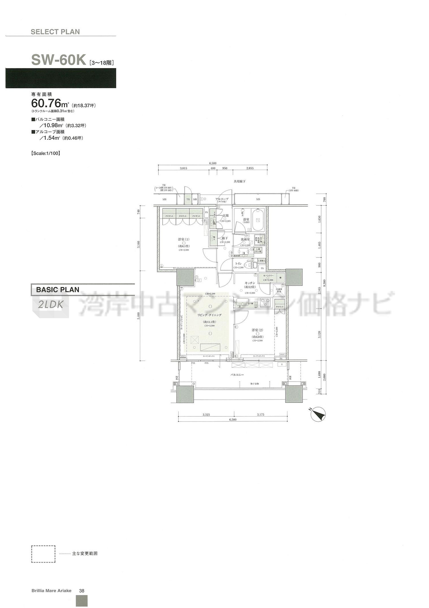 売出中住戸あり SW-60K タイプ 間取り2LDK専有面積60.76m²