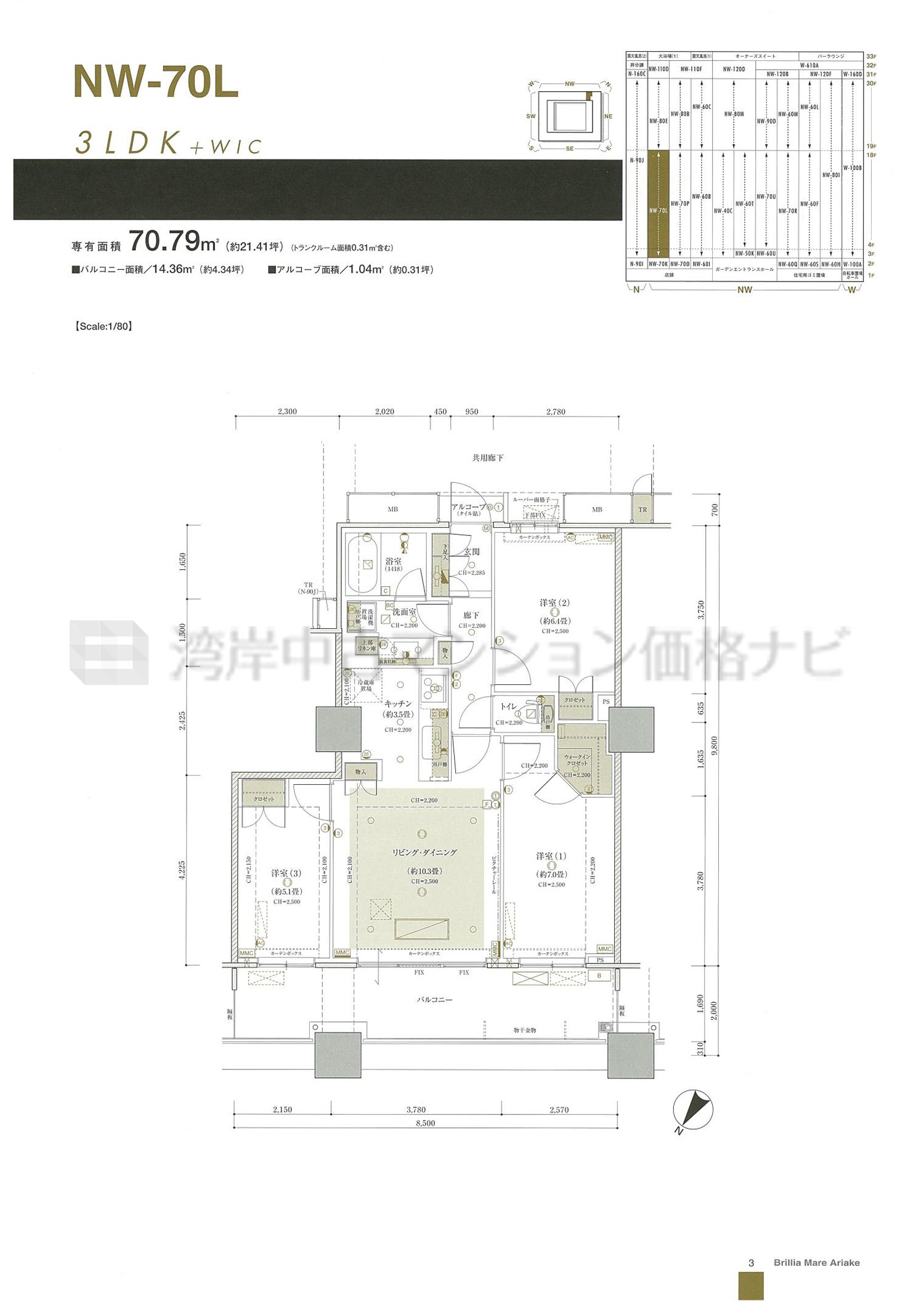 売出中住戸あり NW-70L タイプ 間取り3LDK専有面積70.79m²