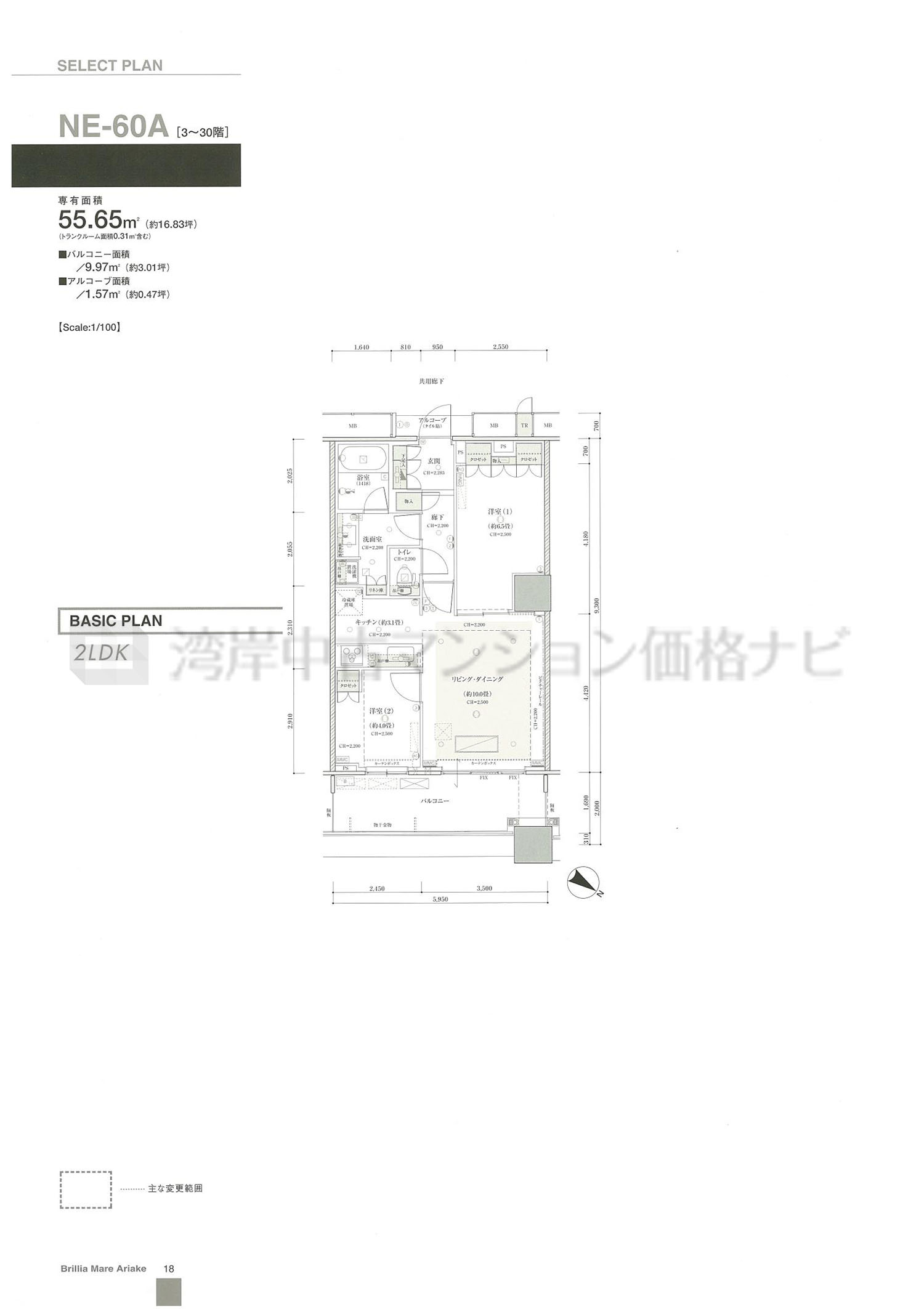 売出中住戸あり NE-60A タイプ 間取り2LDK専有面積55.65m²