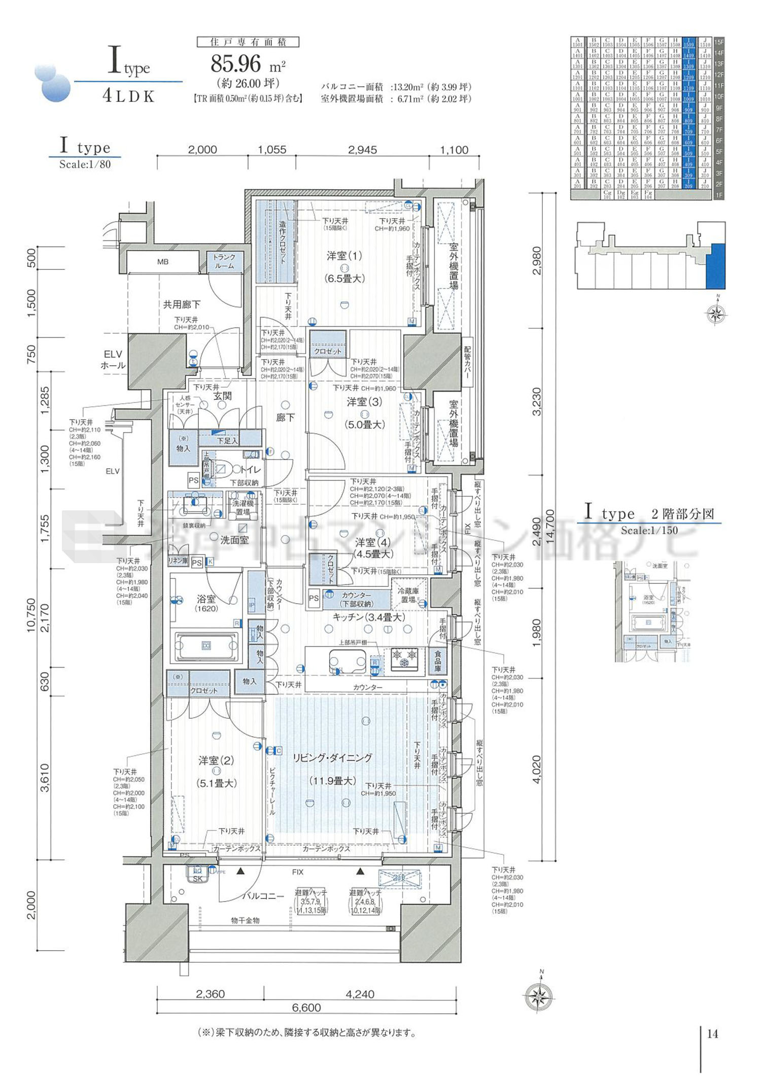 売出中住戸あり I タイプ 間取り4LDK専有面積85.96m²