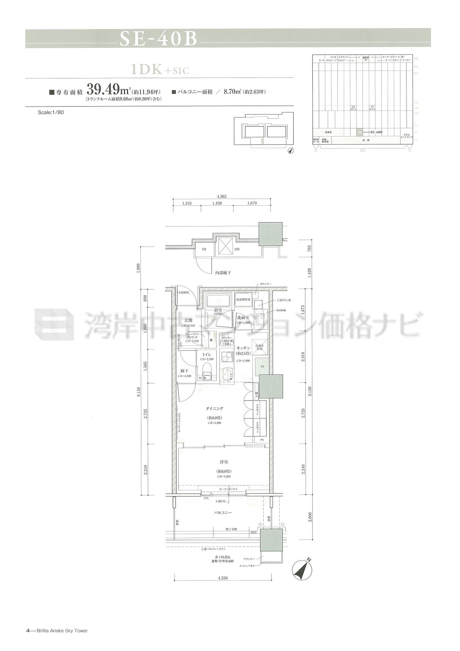 SE-40B タイプ 間取り1DK専有面積39.49m²