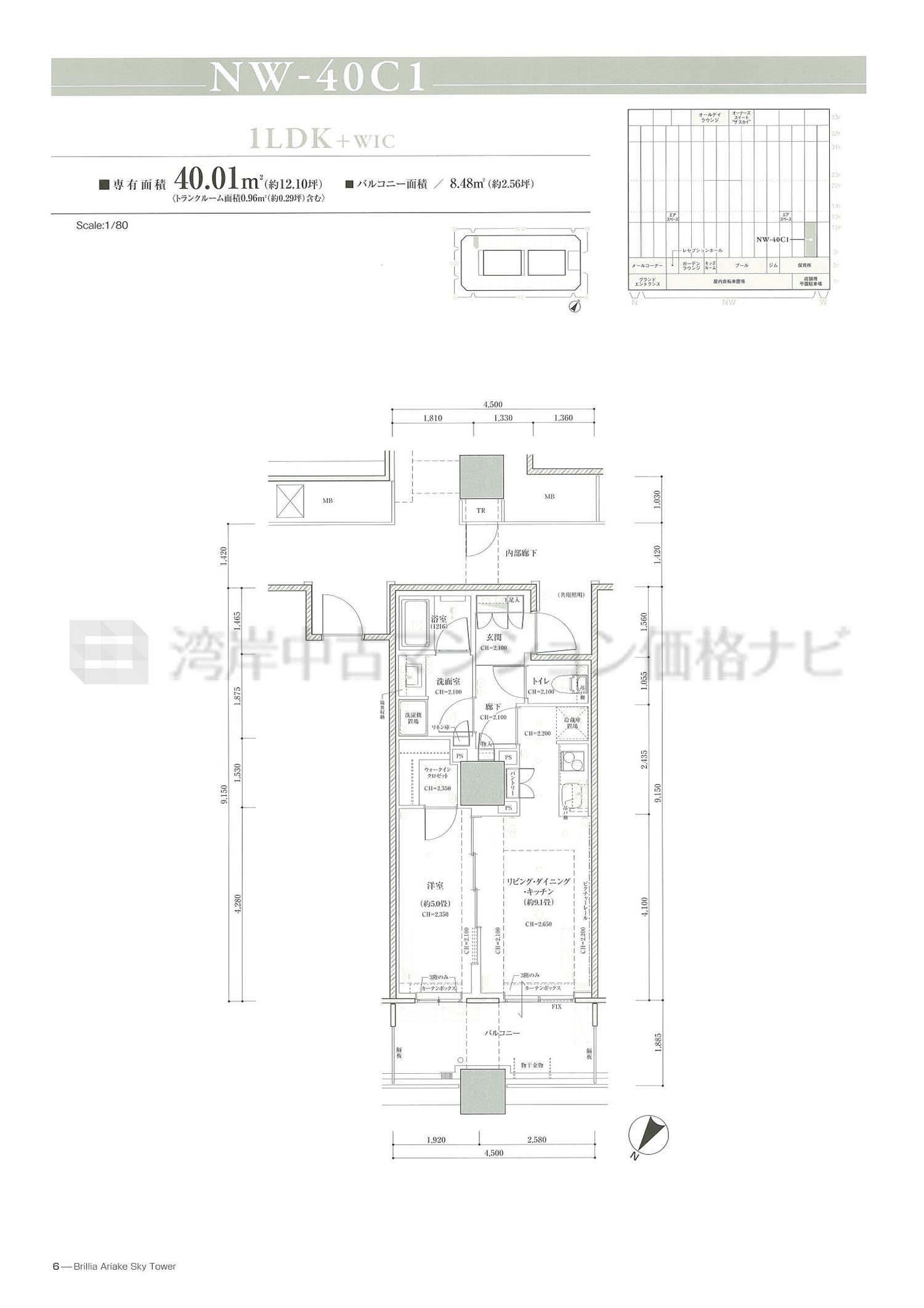 売出中住戸あり NW-40C1 タイプ 間取り1LDK専有面積40.01m²