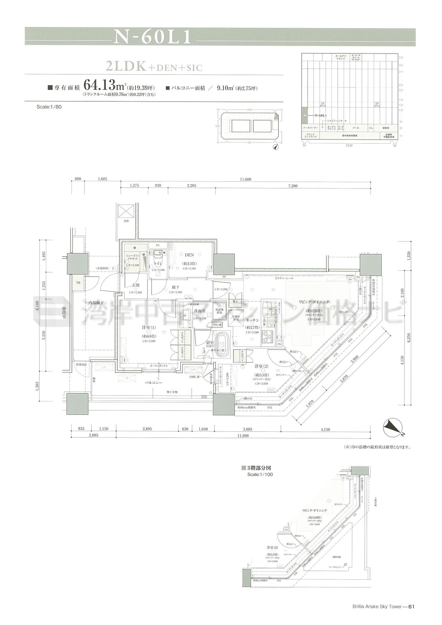 N-60L1 タイプ 間取り2LDK+α専有面積64.13m²