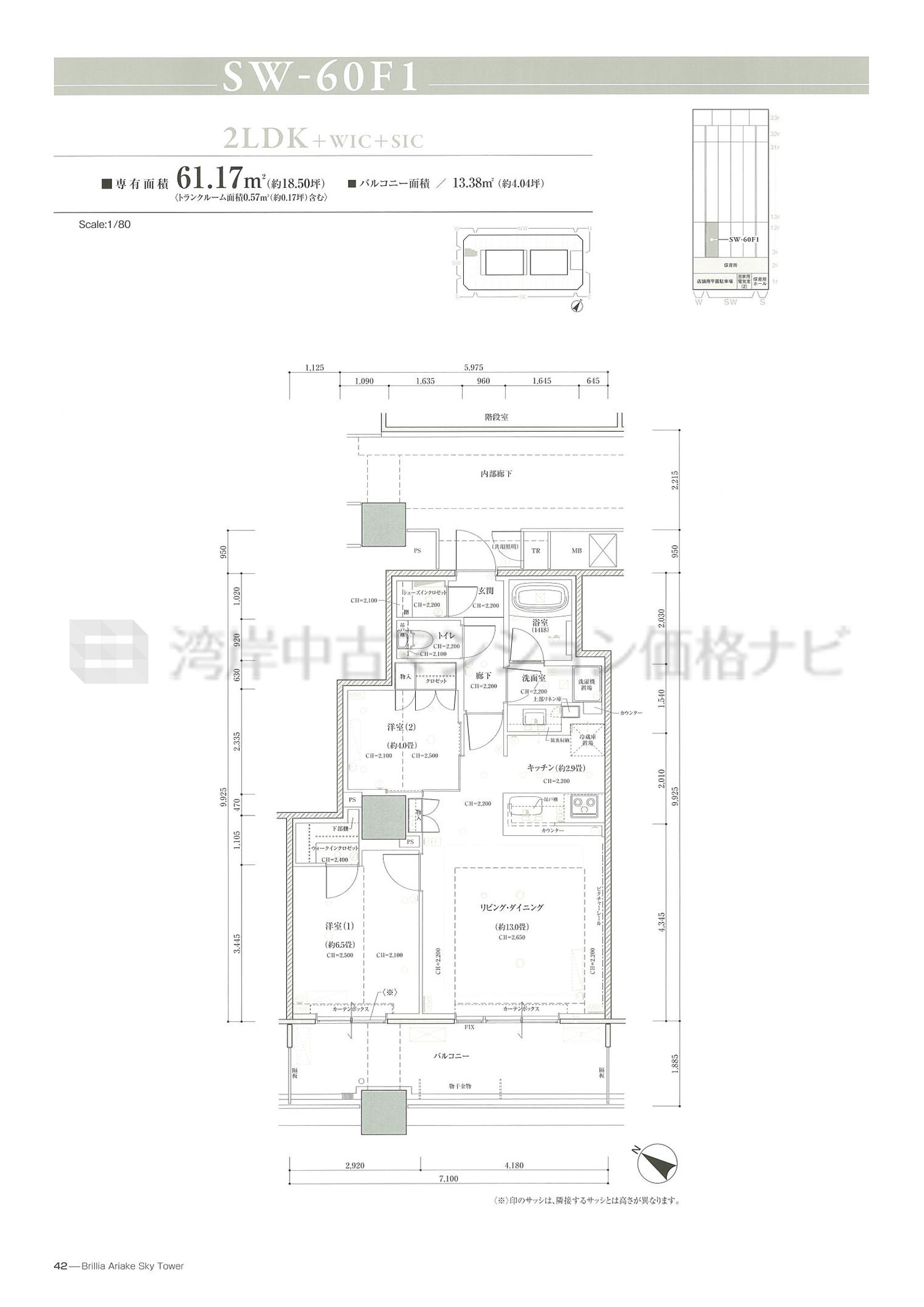売出中住戸あり SW-60F1 タイプ 間取り2LDK専有面積61.17m²