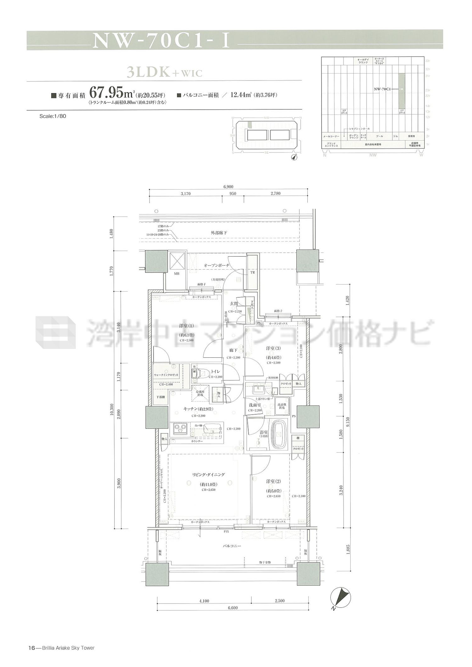 売出中住戸あり NW-70C1 タイプ 間取り3LDK専有面積67.95m²