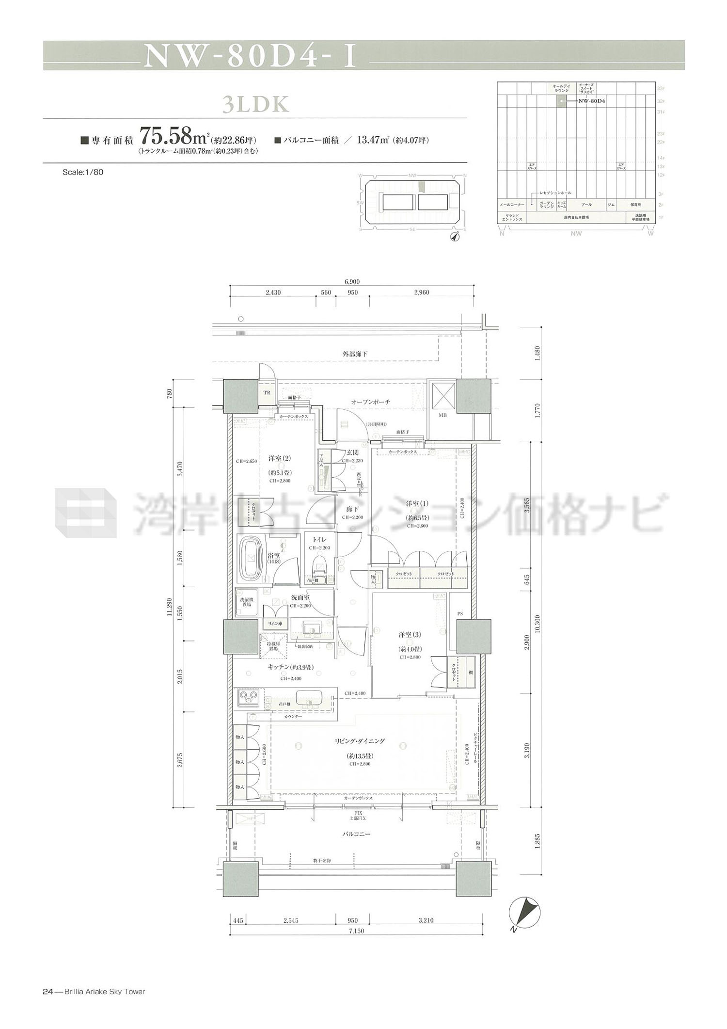 NW-80D4 タイプ 間取り3LDK専有面積75.58m²