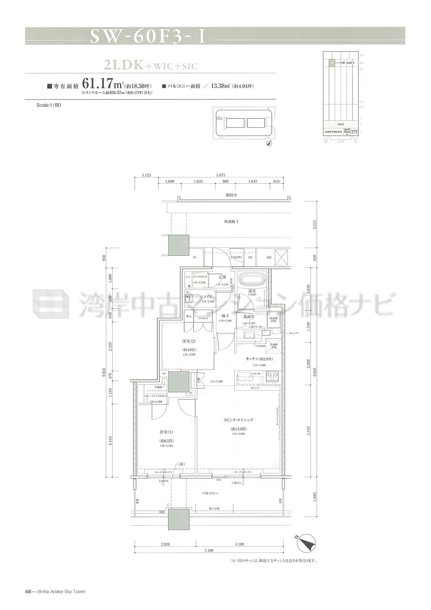 SW-60F3 タイプ 間取り2LDK専有面積61.17m²