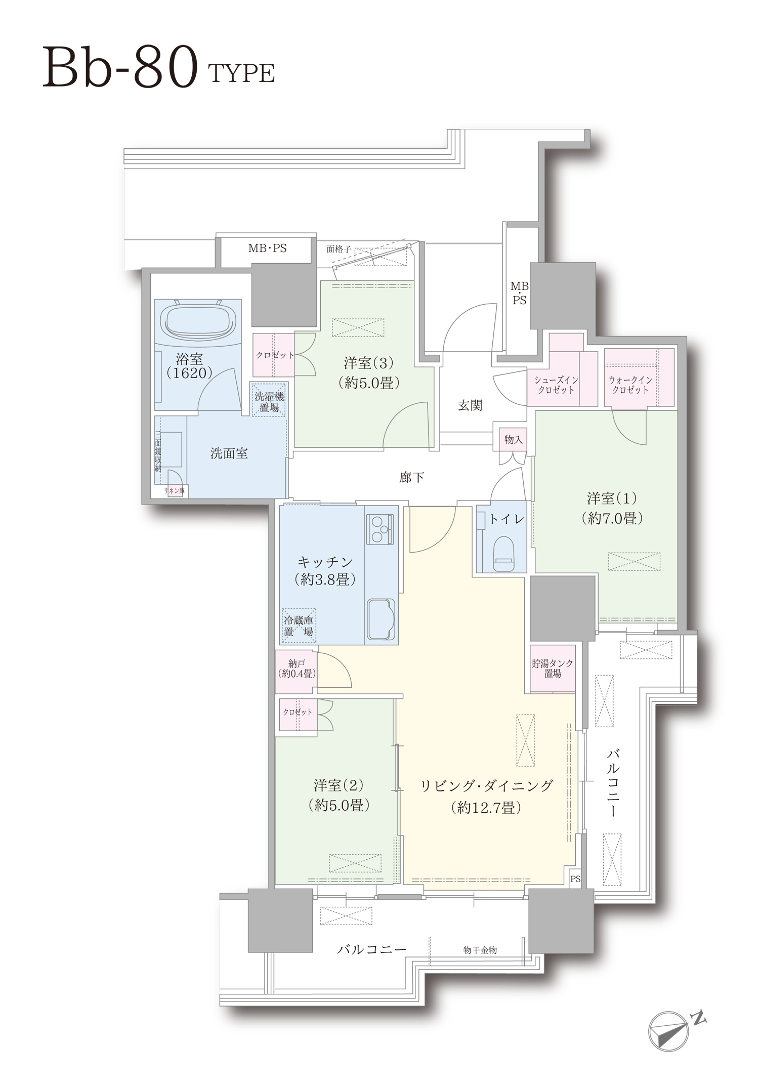 売出中住戸あり Bb-80 タイプ 間取り3LDK専有面積80.58m²