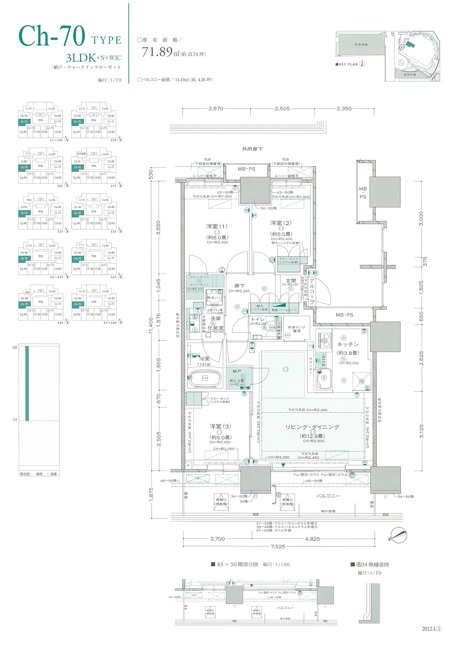 売出中住戸あり Ch-70 タイプ 間取り3LDK専有面積71.89m²