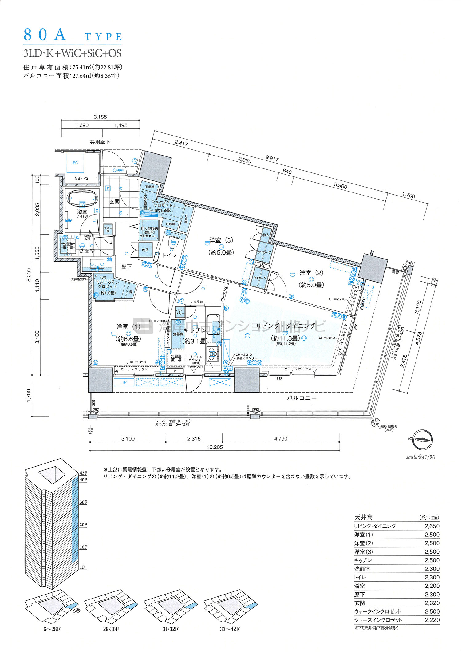 売出中住戸あり 80A タイプ 間取り3LDK専有面積75.41m²