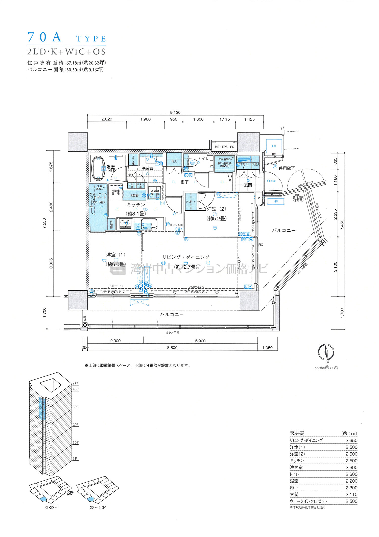 売出中住戸あり 70A タイプ 間取り2LDK専有面積67.18m²