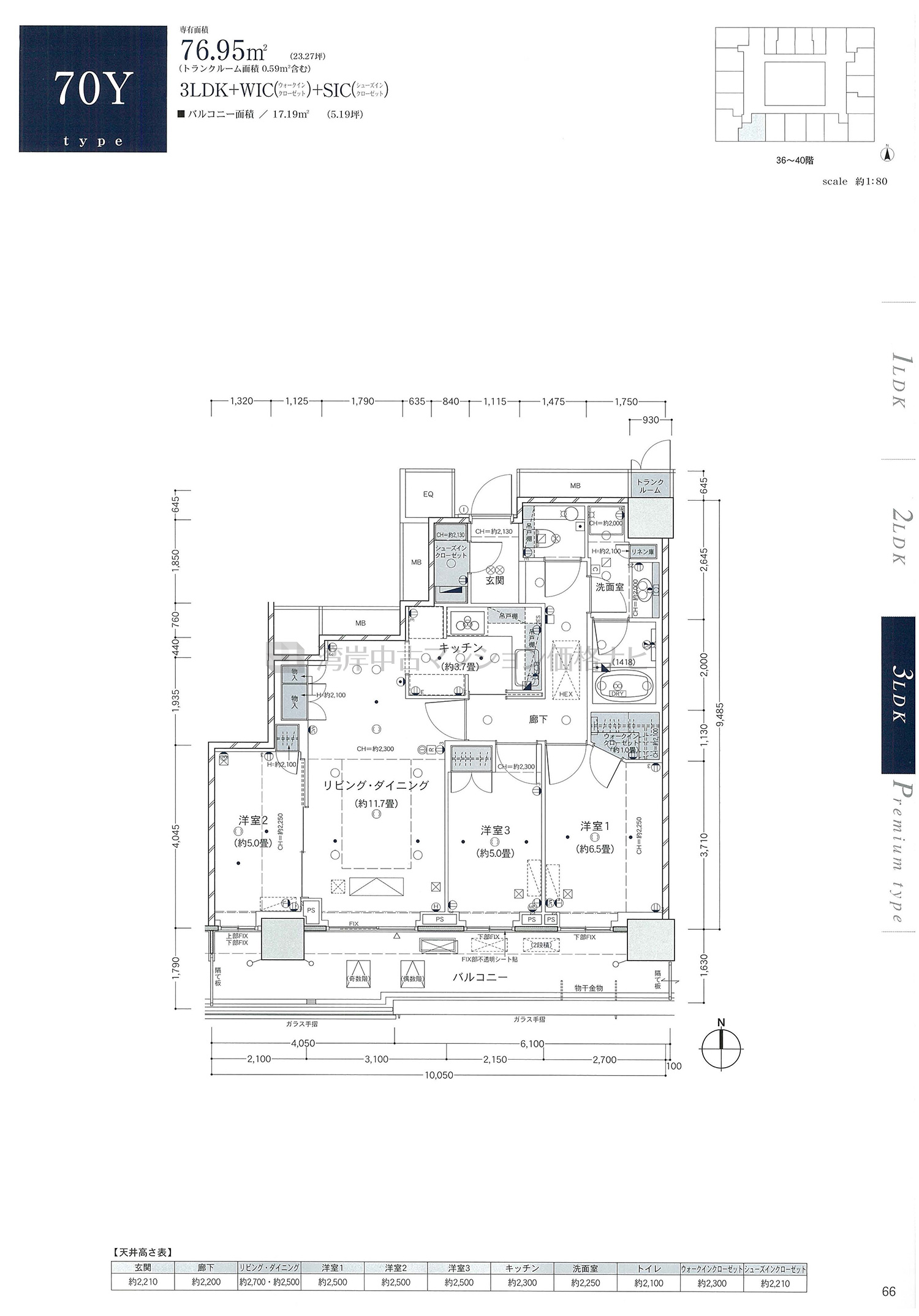 70Y タイプ 間取り3LDK専有面積76.95m²