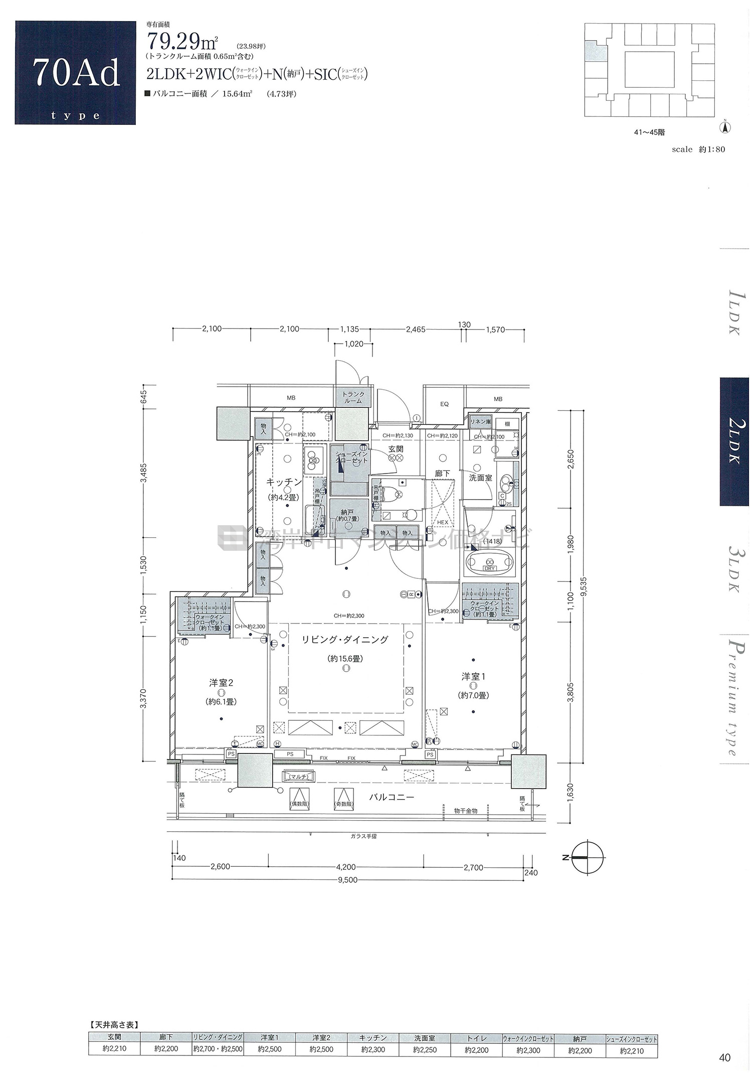 70Ad タイプ 間取り2LDK専有面積79.29m²