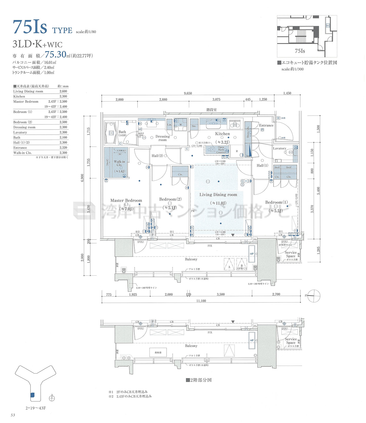 売出中住戸あり 75Is タイプ 間取り3LDK専有面積75.30m²