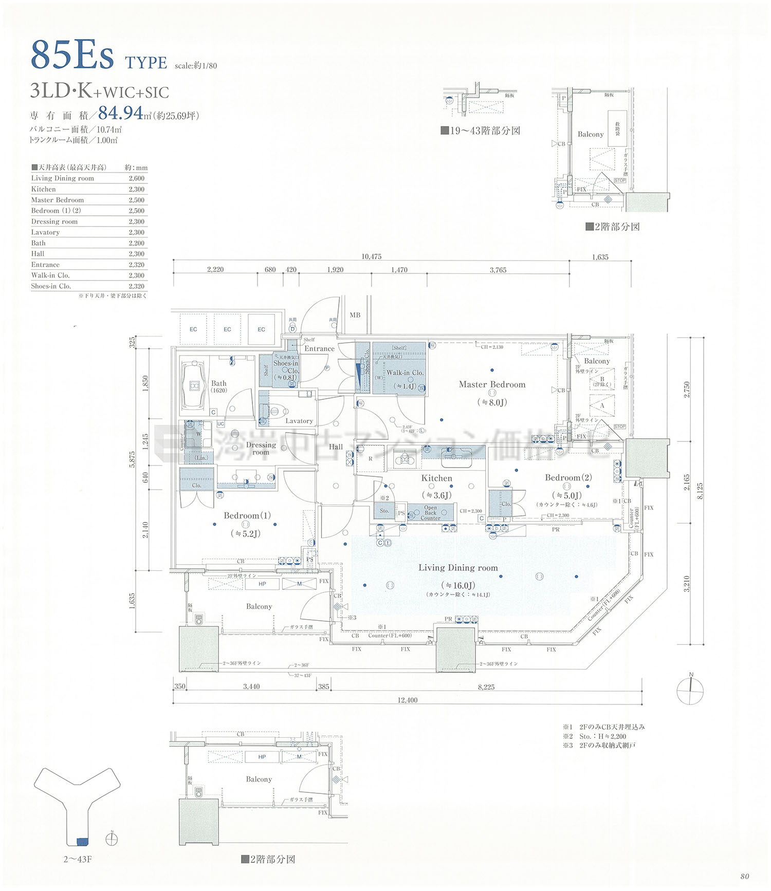 売出中住戸あり 85Es タイプ 間取り3LDK専有面積84.94m²
