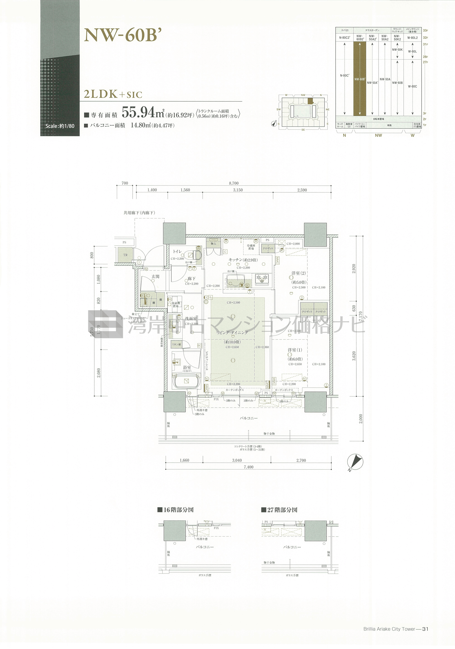 売出中住戸あり NW-60B' タイプ 間取り2LDK専有面積55.94m²