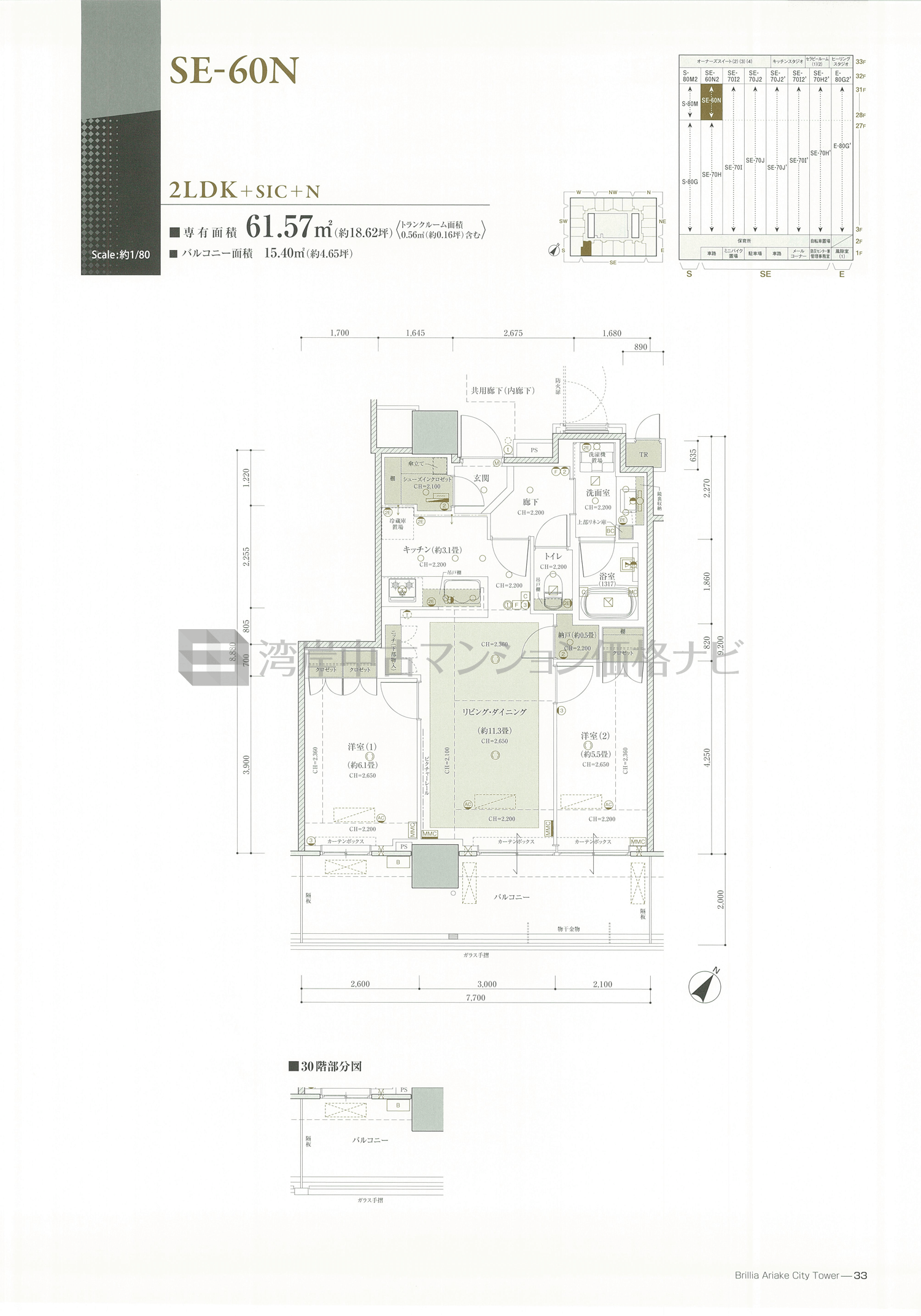 売出中住戸あり SE-60N タイプ 間取り2LDK専有面積61.57m²