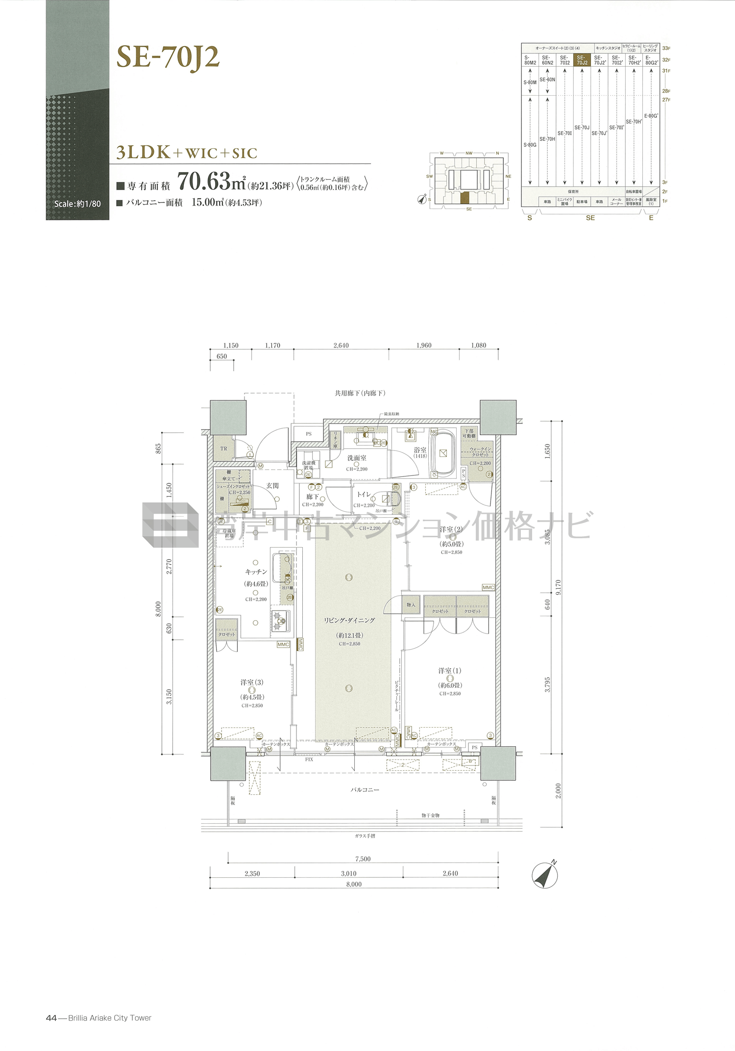 SE-70J2 タイプ 間取り3LDK専有面積70.63m²