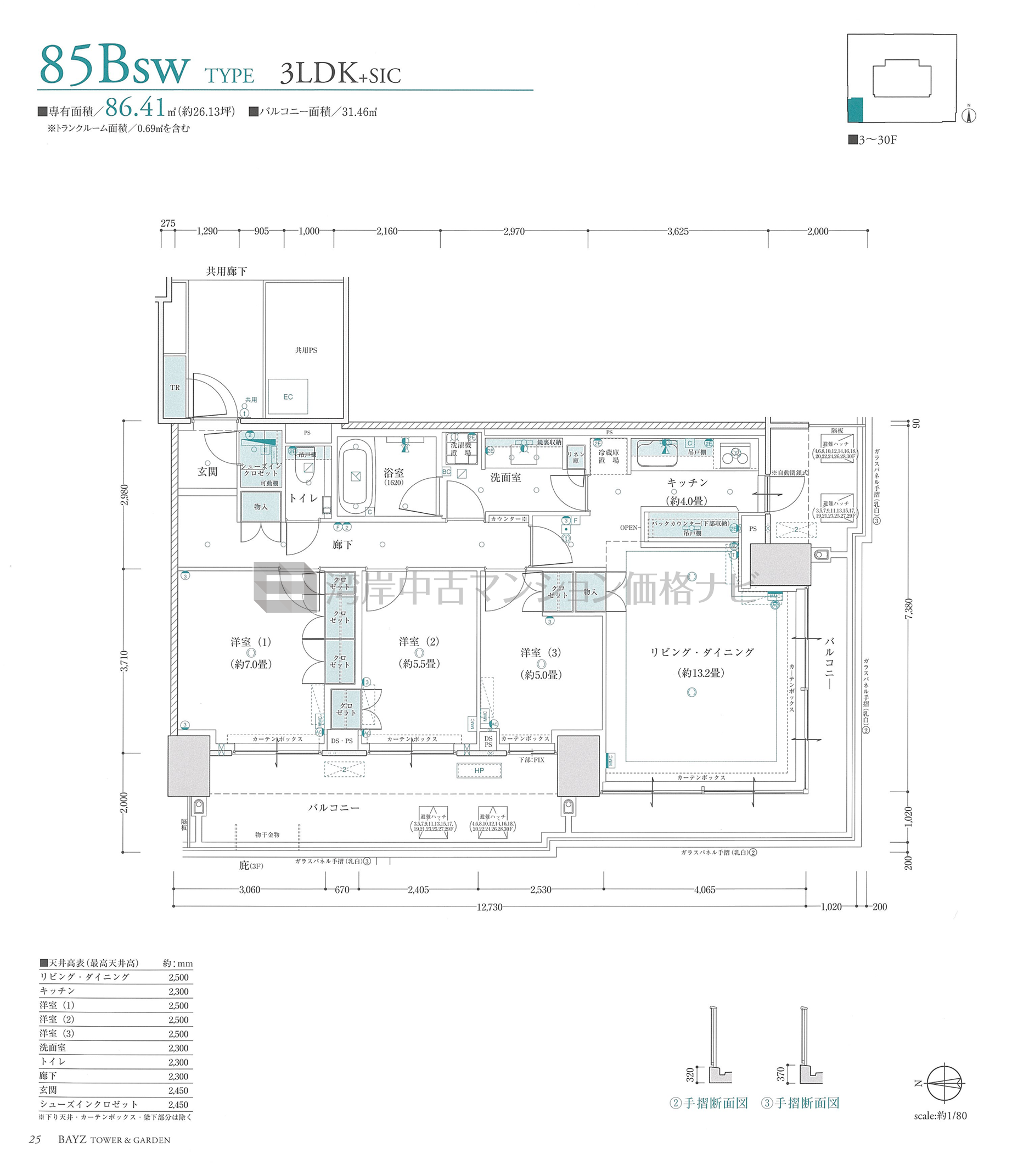 売出中住戸あり 85Bsw タイプ 間取り3LDK専有面積86.41m²