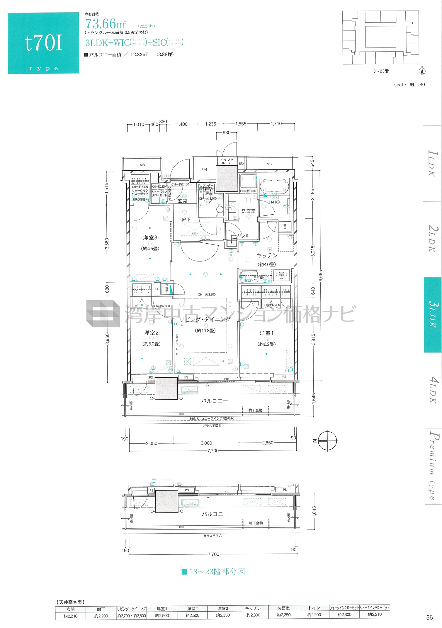 売出中住戸あり t70I タイプ 間取り3LDK専有面積73.66m²