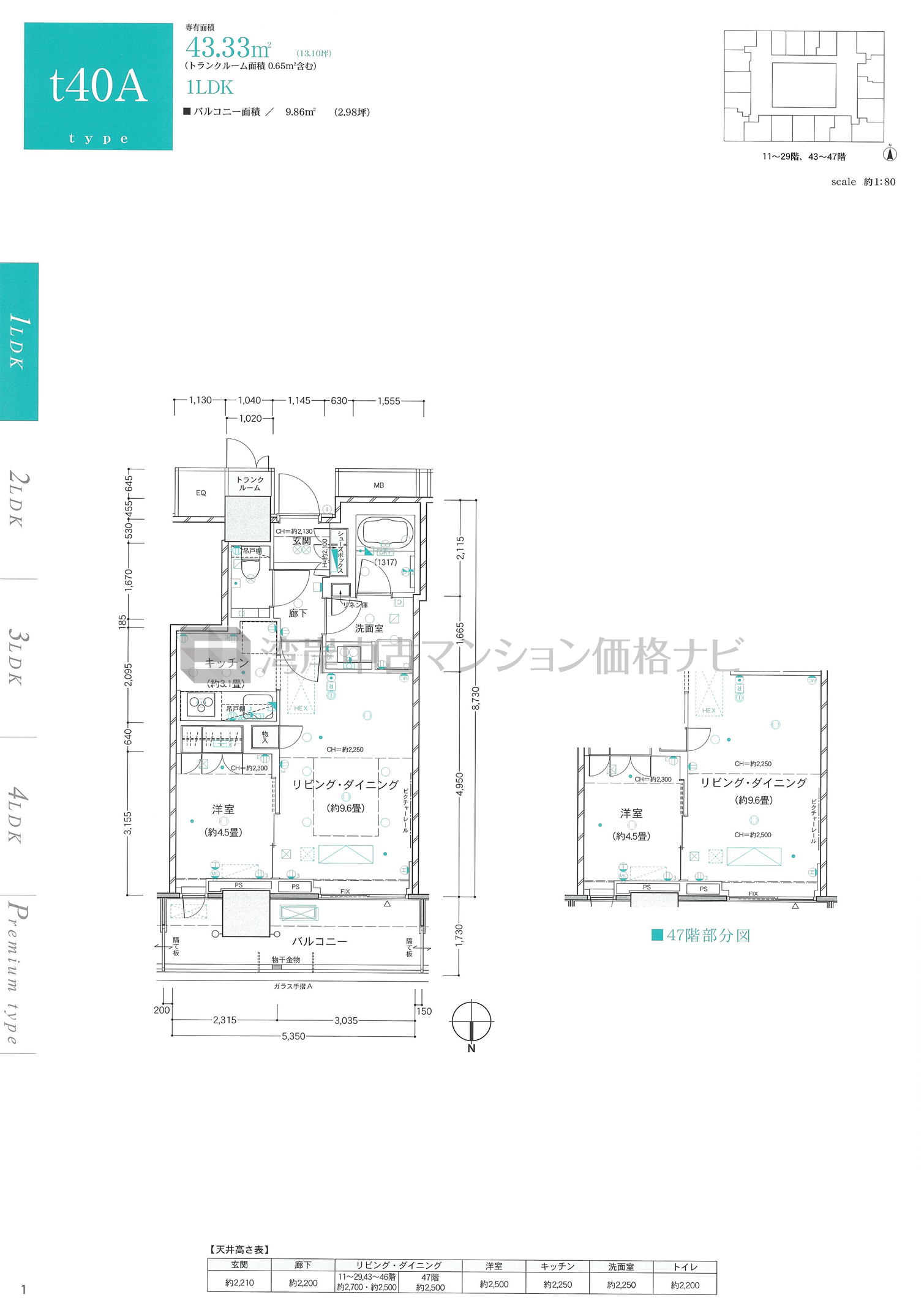 売出中住戸あり t40A タイプ 間取り1LDK専有面積43.33m²
