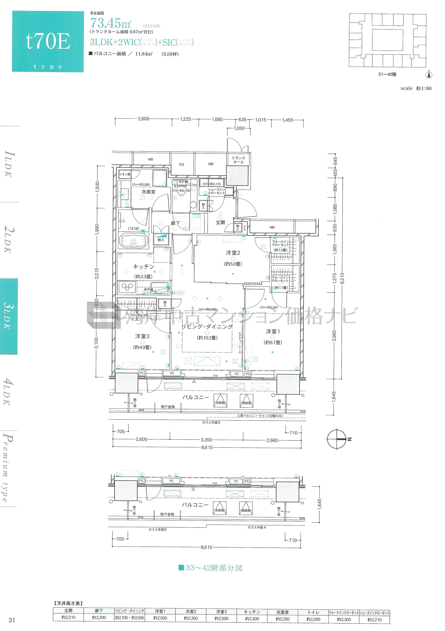 売出中住戸あり t70E タイプ 間取り3LDK+α専有面積73.45m²