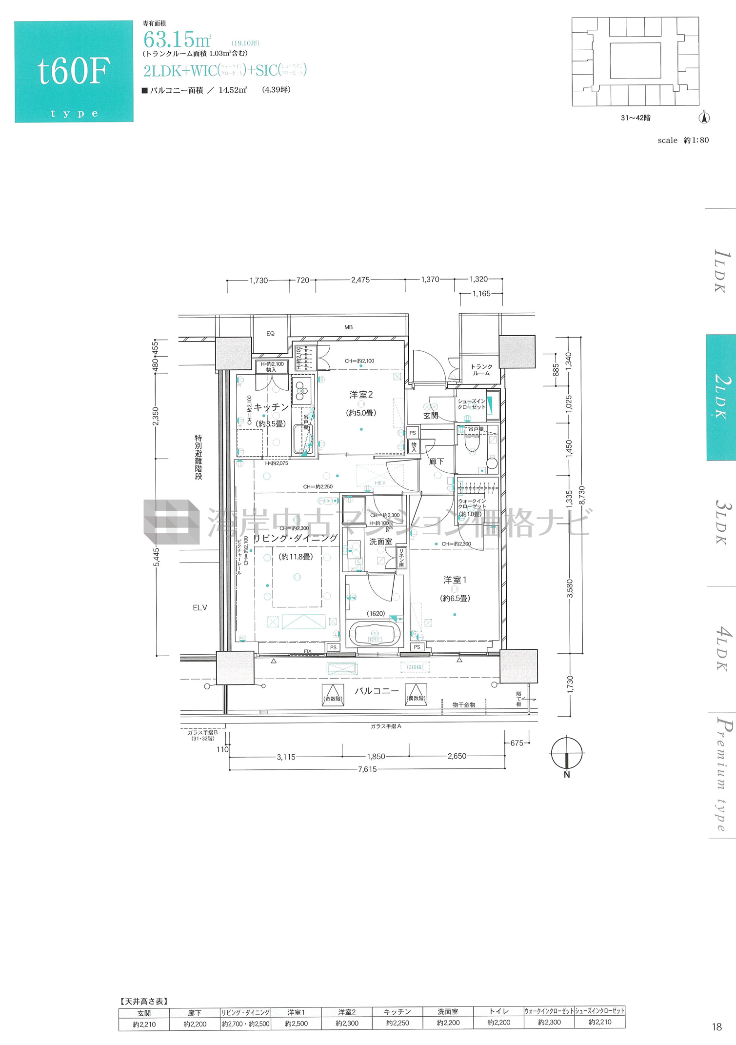 t60F タイプ 間取り2LDK専有面積63.15m²