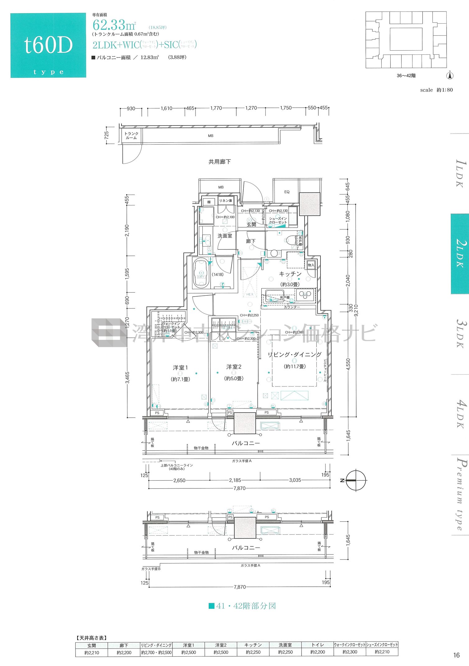 t60D タイプ 間取り2LDK専有面積62.33m²