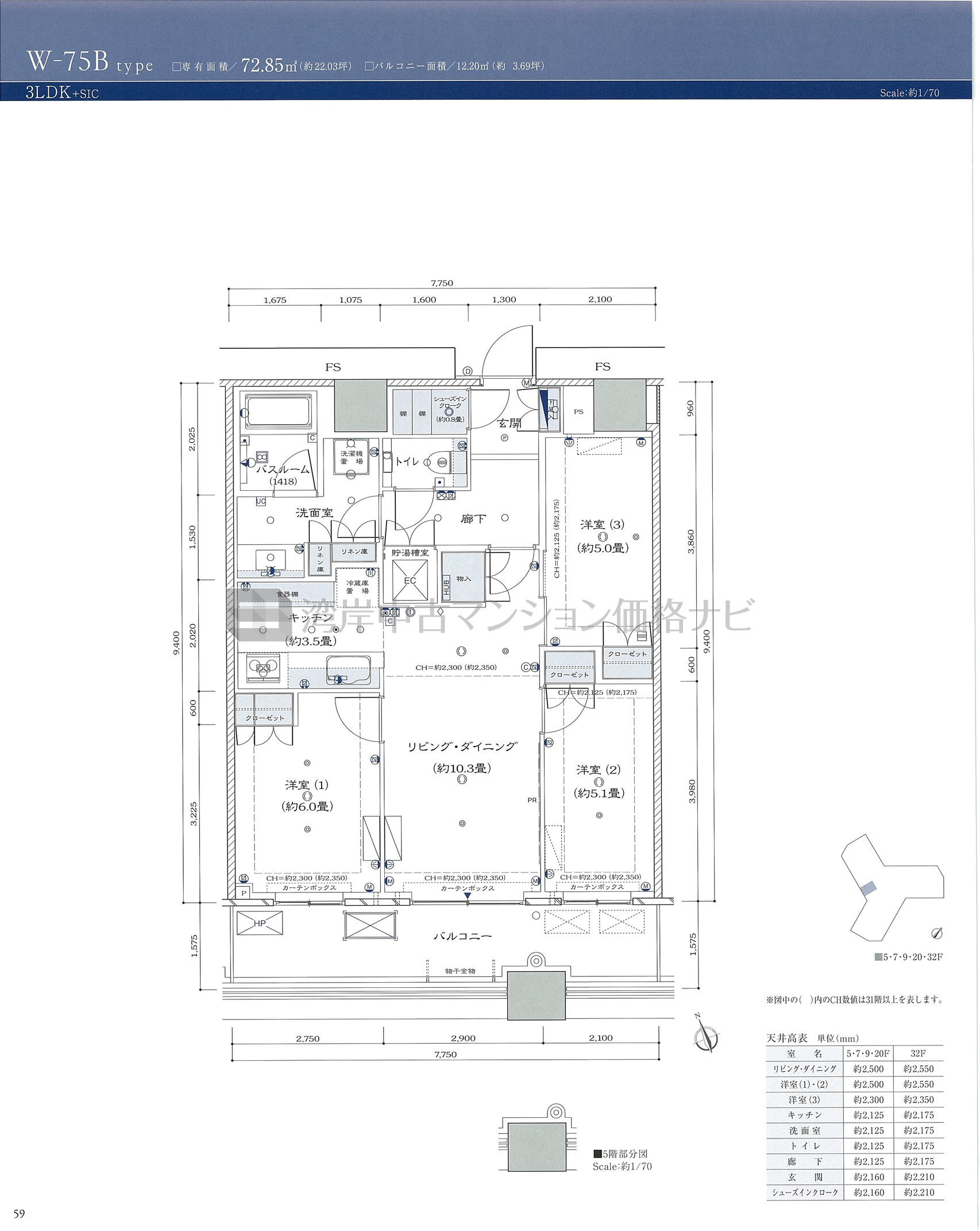 W-75B タイプ 間取り3LDK専有面積72.85m²